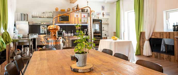 AUF WUNSCH NACH MASS Von (Kräuter-)Likören über Schnäpse bis zu Gin und Wodka reicht das Angebot. Interessierte sind stets dazu eingeladen, sich bei einer Führung und Verkostung selbst ein Bild der Brennerei und der feinen Tropfen zu machen. Wer gerne auch einmal mitmischen möchte, kann eine Eigenkreation maßschneidern lassen, ebenso den Grundalkohol zum Veredeln und Ansetzen beziehen.