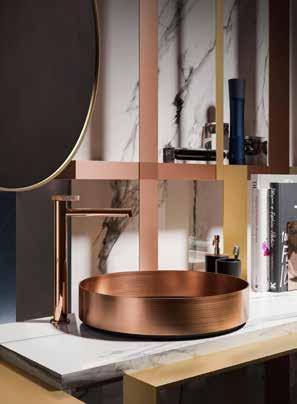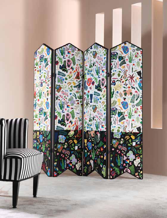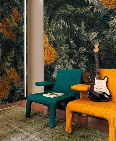 Heute zeigt man wieder mehr Kanten und Ecken und eben auch Dornen, was dazu führt, dass Rose und Dahlie oder auch Bambus und Birke sprießen wie nie zuvor. Besonders gut kommt das Ganze auch im Badezimmer, das hat dann –insbesondere in Tageslicht gedippt – fast etwas von einer Outdoor-Dusche oder -Badewanne. Tapeten sind auch hier denkbar, eine andere Option ist Feinsteinzeug. Dezent, aber effektvoll etwa das Design Papier Espoir Chaud von Mirage. Die langstieligen Blumen, die förmlich aus dem Boden wachsen, wirken wie hingehaucht oder mit Bleistift abgepaust. Eine Instant-Entspannung! Ganz andere Schiene: der DschungelDauerbrenner. Ob realistisch (fürs Kinderzimmer) oder abstrakt, wie zum Beispiel Flower Jungle von LondonArt. Ohne die Namensgebung käme man hier wohl nicht drauf, was einem da entgegenwuchert. Macht nichts, für viele ist der stilisierte Stil einfach ansprechender, da unverfänglicher und somit auch leichter zugänglich. Ein klassisches Beispiel hierfür sind Fliesen, wie man sie auch heute noch gerne in Wiener Altbauten findet. Man registriert beim Blick nach unten gar nicht so richtig, ob das jetzt Blütenblätter sind oder was anderes – nur, dass es gefällt. Wie die deutsche Lyrikerin Anke Maggauer-Kirsche schreibt: „Blumen müssen nicht schön sein. Sie sind es.“ Das trifft etwa auch auf die Herbstkollektion von Marrakech Design zu. Gerbera Autumn können wir uns besonders gut am Boden vorstellen, die Zementfliesen funktionieren auch hervorragend mit einer Fußbodenheizung, solange man darauf achtet, die