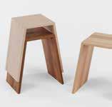 neuen Materialien experimentiert – so wird für die Sessel neben Holz auch Gewebe, wie man es sonst von Turnschuhen kennt, verarbeitet.