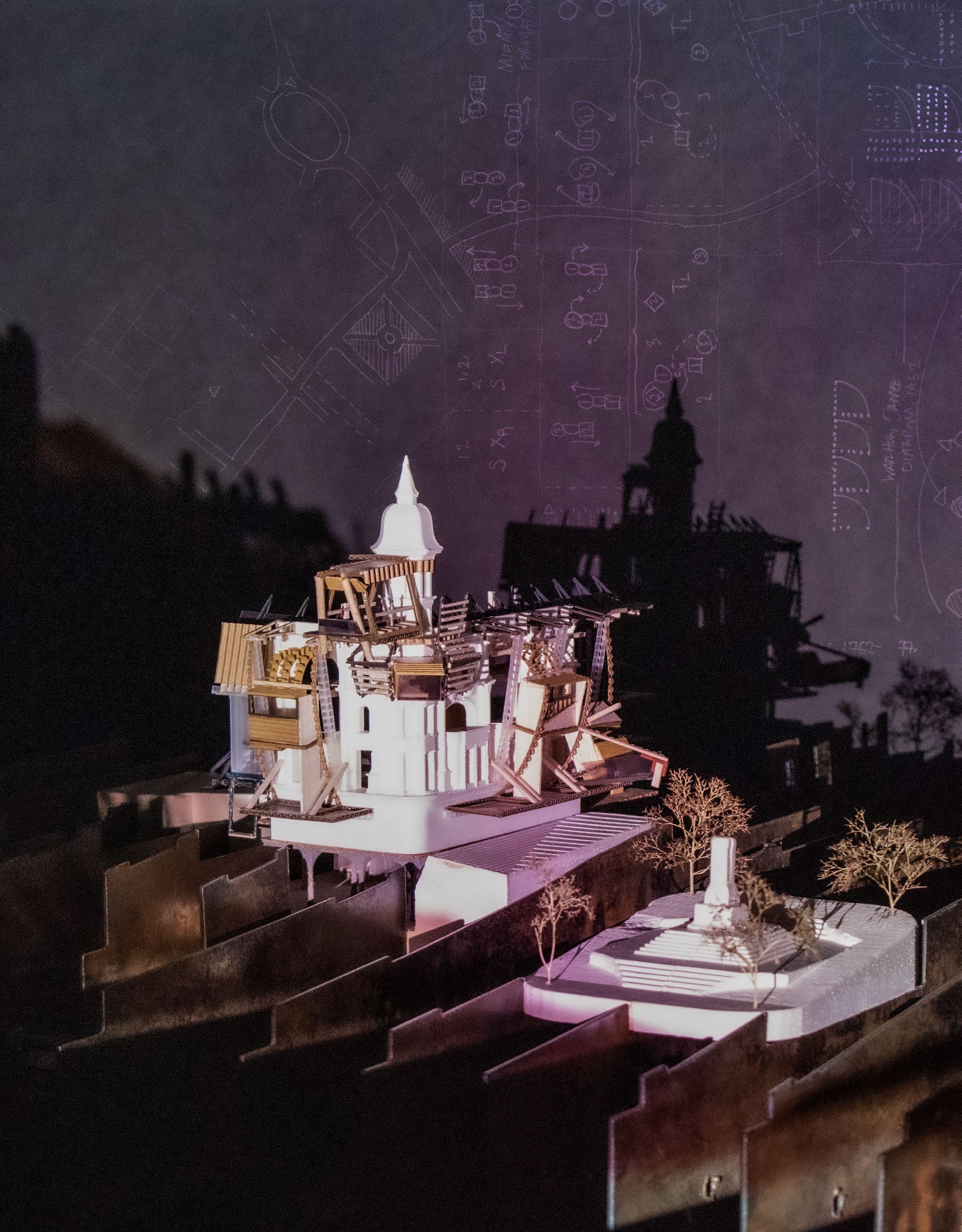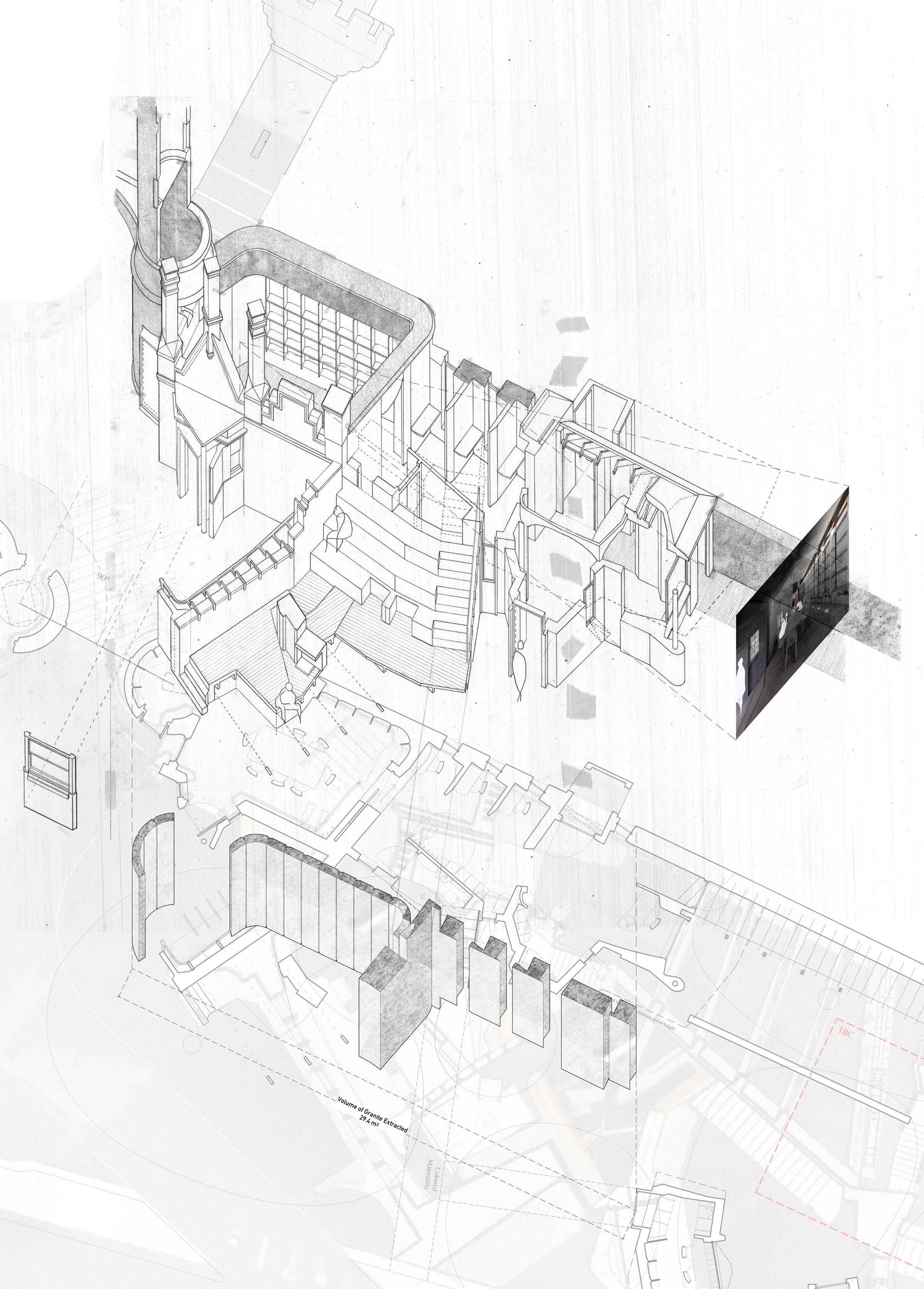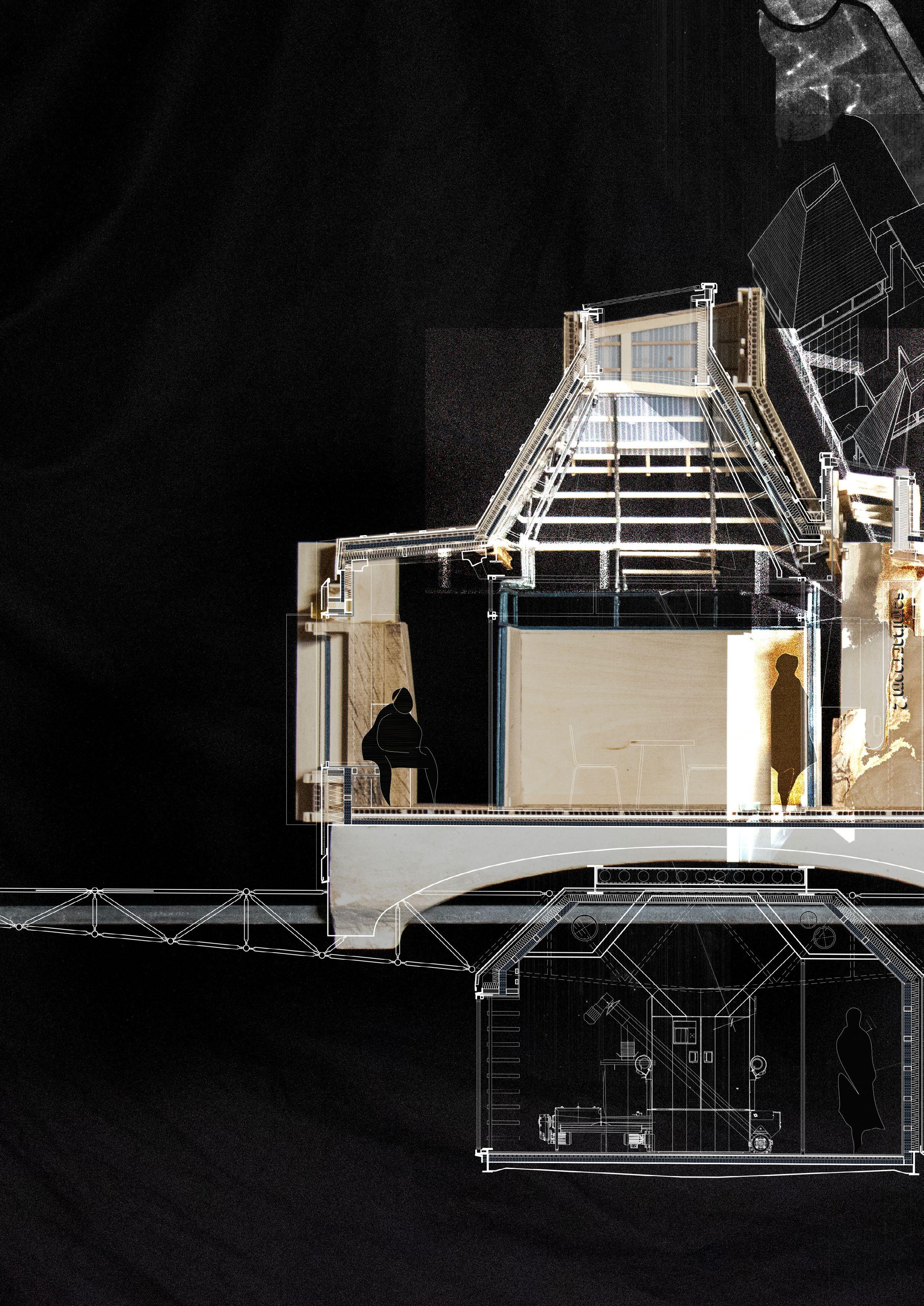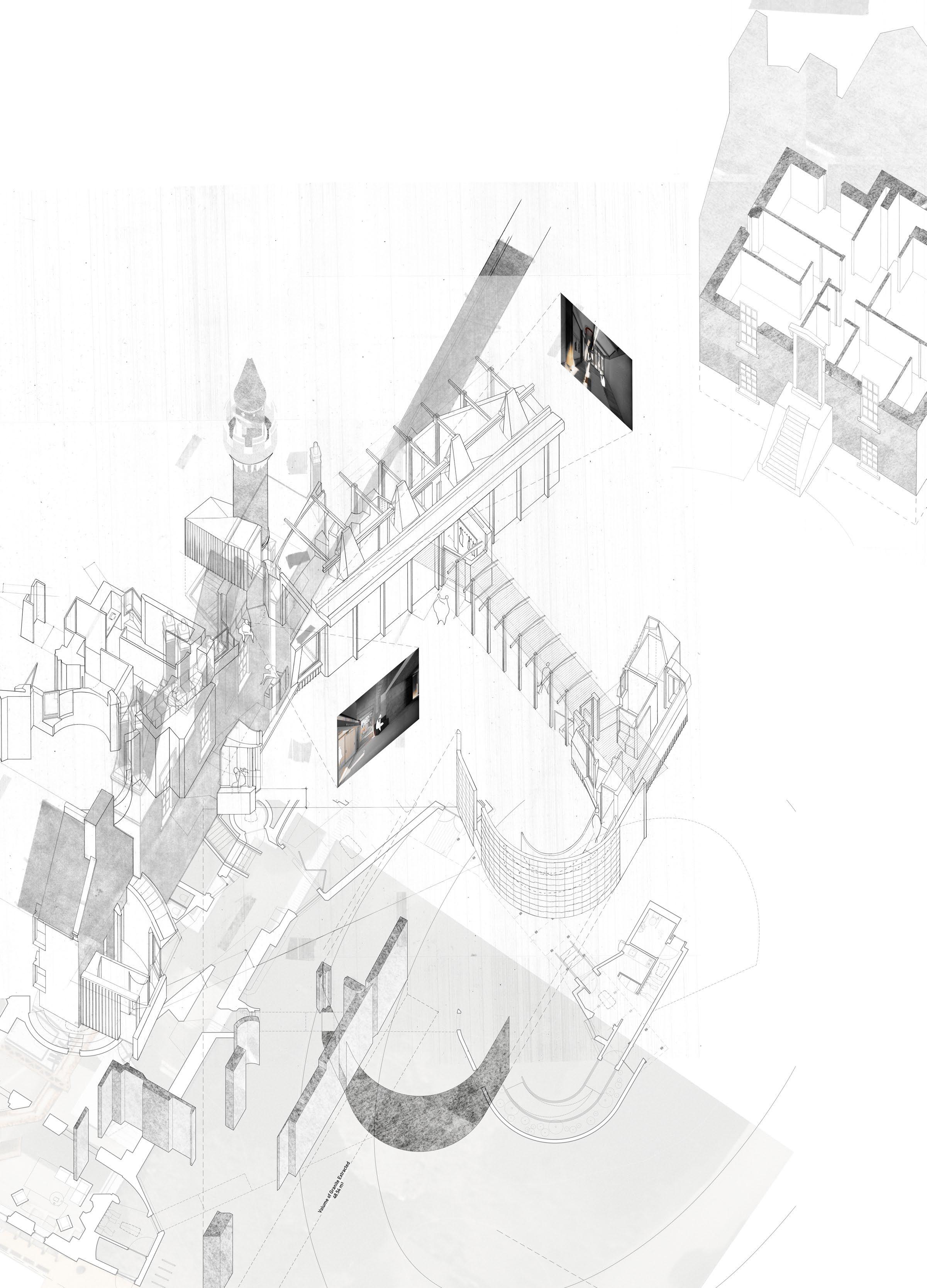 Acts of Support, materialised throughout the thesis have been used to present work physically, architecture and digitally. Frequently communicated by a sense of bearing weight a cantilever became a motif throughout both semesters Mimicking both, “An Architectural Device of Unknowing” and “Supporting Reconciliation,” acts of suspending, whether it be between users, over walls or through architectonic representation, became a design narrative that translates to giving a sense of importance between what’s suspended and what it grounded. The notion of suspense finds a type of spirituality attached to it. Weightless animate objects that translate to sense of importance. As such, the thesis aims to make use of these notion’s through elevating objects dependant on their programmatic or technical values.