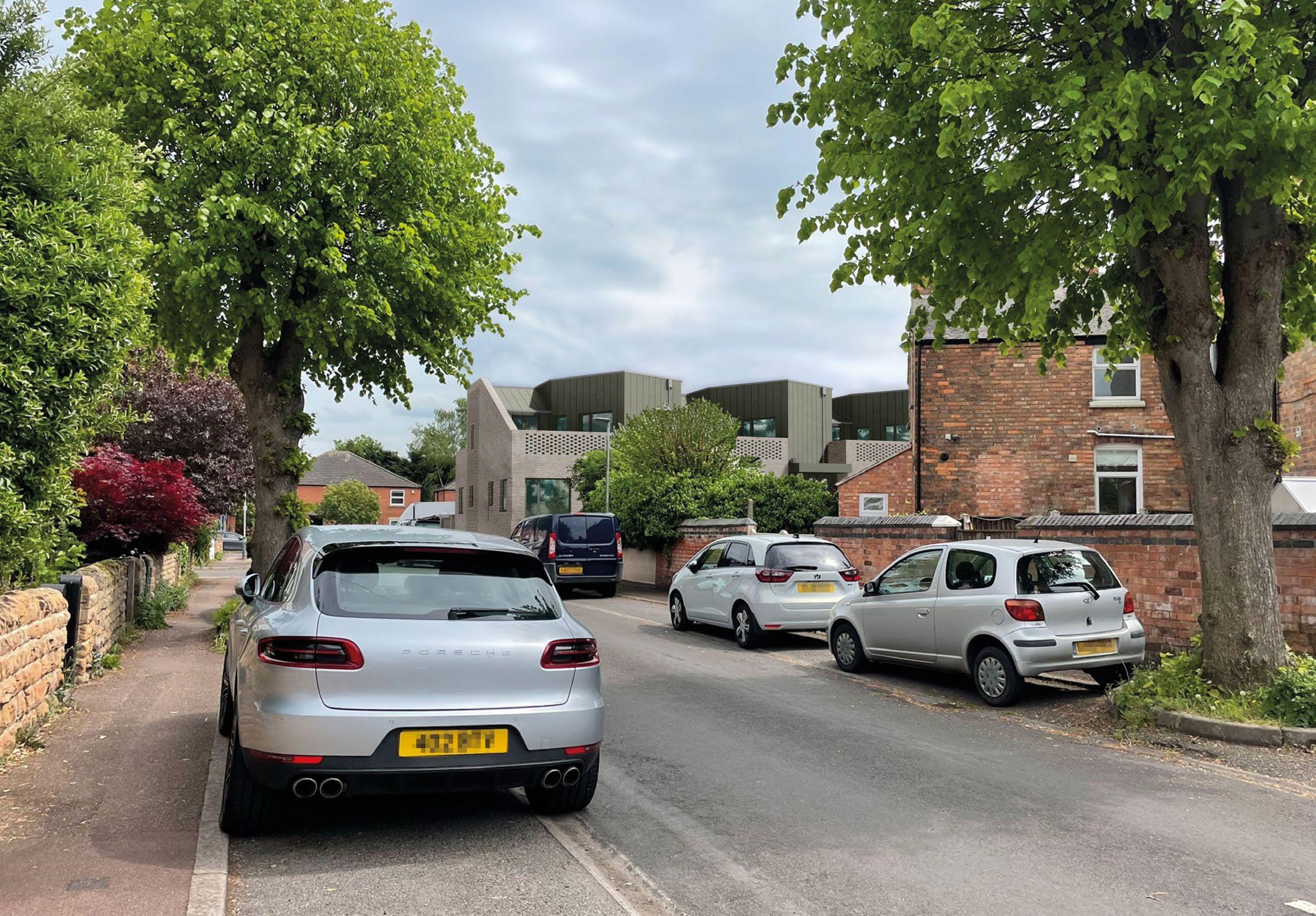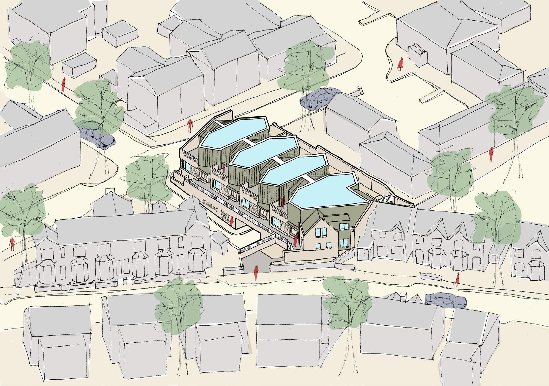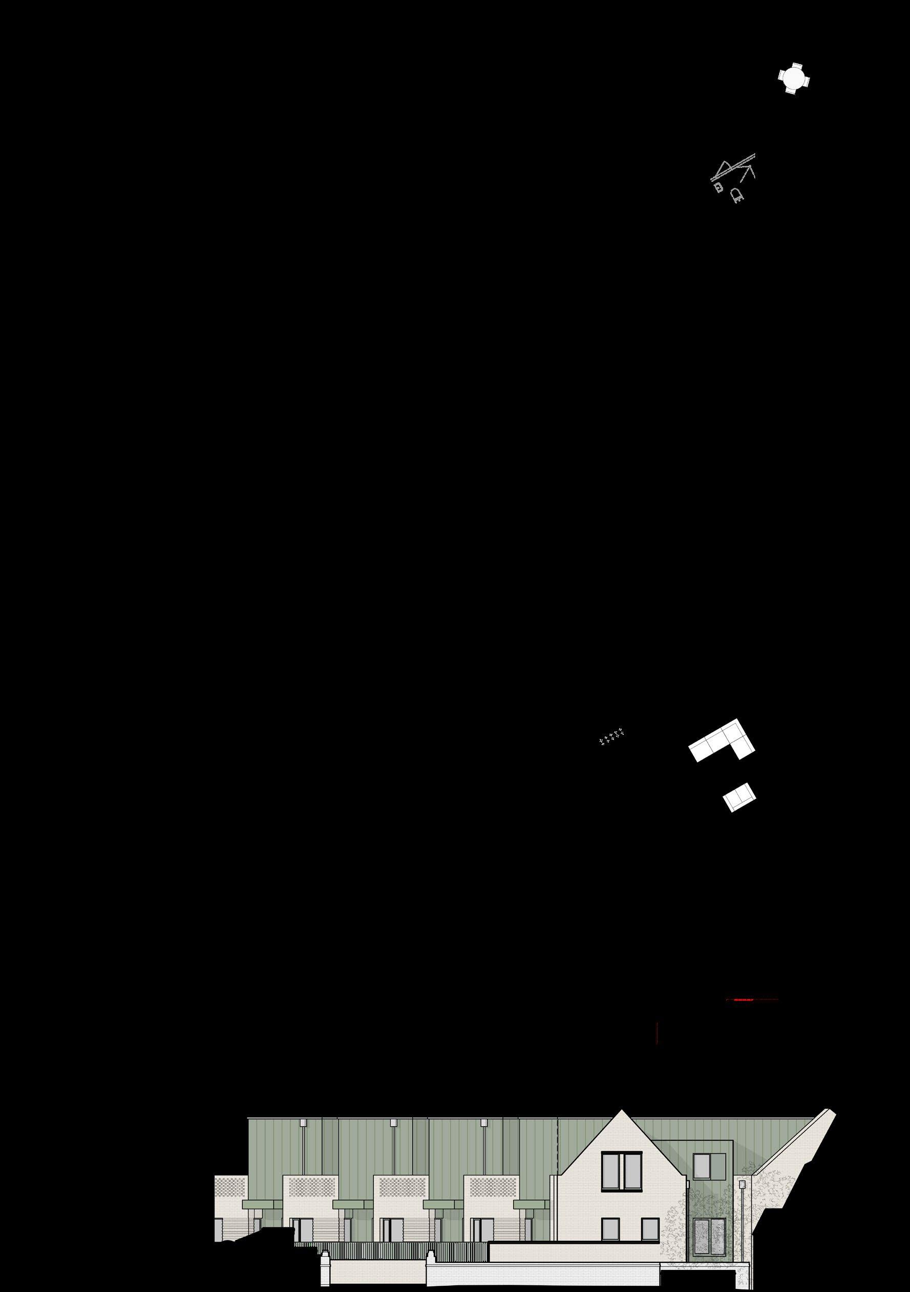 On a 1000 sqm site of a former nursery, RDA was appointed to design a high-density housing scheme on a restricted infill site. The project aimed to address challenges of overlooking issues and a steep slope by utilizing undercroft car parking for flood mitigation and angled terraces to direct views away from neighboring buildings. The resultant scheme provided nine contemporary terraced housing units.