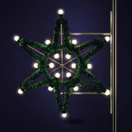 SIRET 115 with single ropelight. 36683.01B 115 x 120 cm 230V 34W 8,5 kg Cold white LED 36684.01B 115 x 115 cm 7,0 kg 36684.01BW 115 x 115 cm 7,0 kg 36684.01RW 115 x 115 cm 7,0 kg 36684.01RV 115 x 115 cm 7,0 kg FOR ROPE 36683.01BW 115 x 120 cm 230V 34W 8,5 kg Cold white LED 36683.01RW 115 x 120 cm 230V 34W 8,5 kg Cold white LED 36683.01RV 115 x 120 cm 230V 34W 8,5 kg Warm white LED FOR POLE WALLFOR WALL Different variations of SIRET decorations available. STREET DECORATIONS 76 ADAMLIGHTS© Product Catalogue 2022