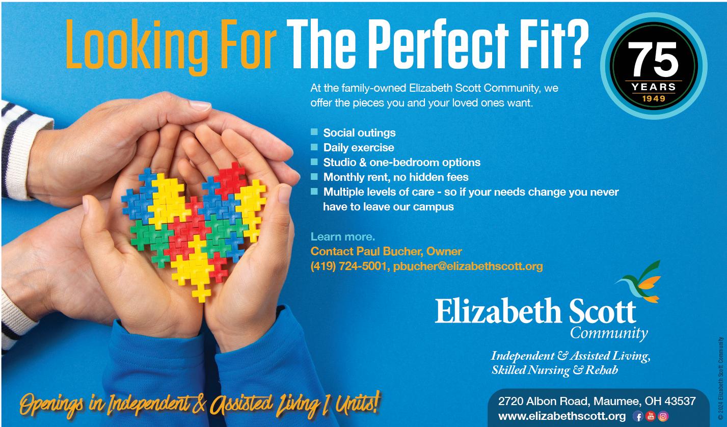 The Elizabeth Scott Company offers a variety of living units for seniors. Independent Living units are unfurnished one-bedroom and studio apartment models. Each apartment features walk-in closets (one-bedroom); with daily continental breakfast and dinner included. Amenities include a Resident Activity Center with fitness equipment; heated outdoor pool; daily social programs; utilities including Wi-Fi; and weekly housekeeping. Elizabeth Scott staff will also greet you every morning in your apartment. The Elizabeth Scott Community also offers two distinct levels of Assisted Living and Skilled Nursing if further care is needed. In September 2015, the Elizabeth Scott Community opened a 12,000 square foot Skilled Rehabilitation facility. The Skilled Rehabilitation facility offers state-of-the-art inpatient and outpatient treatment along with 14 private rooms with private baths. For more information, please email Matt Bucher at mbucher@elizabethscott.org or call 419-724-5021.