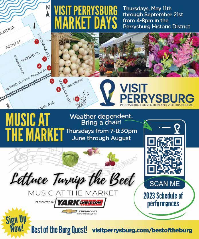 LOCAL BUSINESS Know of any changes in the area? Send them to editor@adamsstreetpublishing.com most read online 1. Toledo Food Truck Guide 2. The Stars Speak: May 2023 3. A Weekend Warrior’s Brunch Bucket ListToledo City Paper 4. City Sips 2023 5. The Freshest Guide Around: Toledo Farmers Markets toledocitypaper.com Musician Rob Storm weathers the years with love, live music The Freshest Guide Around: Toledo Farmers Markets June 1-June 30, 2023 Vol. 26 • Issue 6 Adams Street Publishing Co. What song sounds like summer to you? Advertising/General Info For advertising and general information, call 419-244-9859 or fax 419-244-9871. E-mail ads to adsin@toledocitypaper.com. Deadline for advertising copy 2pm. Friday before publication. Toledo City Paper subscriptions are available by mail for $28/quarterly or $75 per year at Toledo City Paper, 1120 Adams St., Toledo, Ohio 43604. One copy free per person per week; extra copies $1 each.