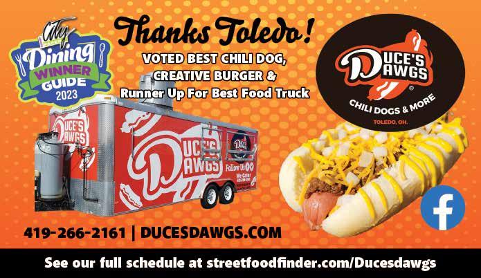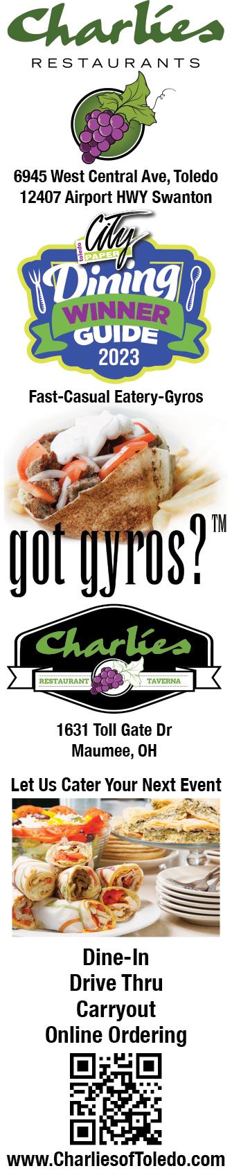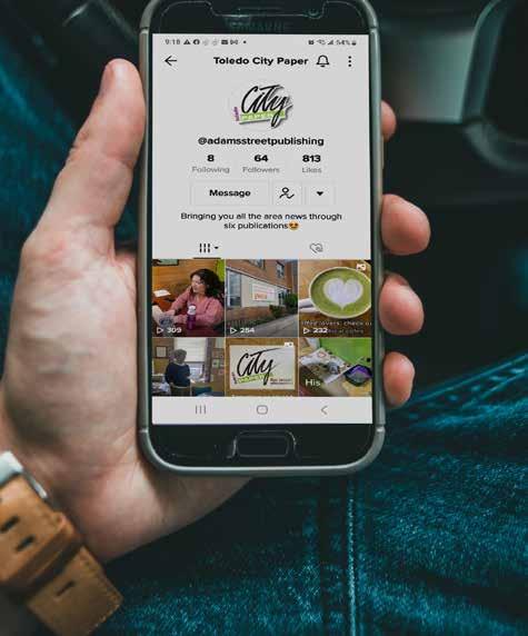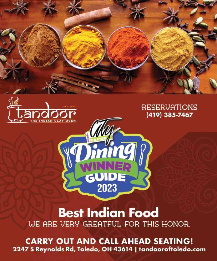 For advertising and general information, call 419244-9859 or fax 419-244-9871. E-mail ads to adsin@ toledocitypaper.com. Deadline for advertising copy 2pm. Friday before publication. Toledo City Paper subscriptions are available by mail for $28/quarterly or $75 per year at Toledo City Paper, 1120 Adams St., Toledo, Ohio 43604. One copy free per person per week; extra copies $1 each. Persons taking copies for any reason other than personal use are subject to prosecution. Letters to the editor must be limited to 300 words, are subject to editing, and should include the writer’s full name and phone number. Any letter submitted to the editor or publisher may be printed at the publisher’s discretion in issues subsequent to its receipt. ©2023 by Adams Street Publishing Co. All rights reserved. Reproduction in any form without written permission of the publisher is prohibited. Also