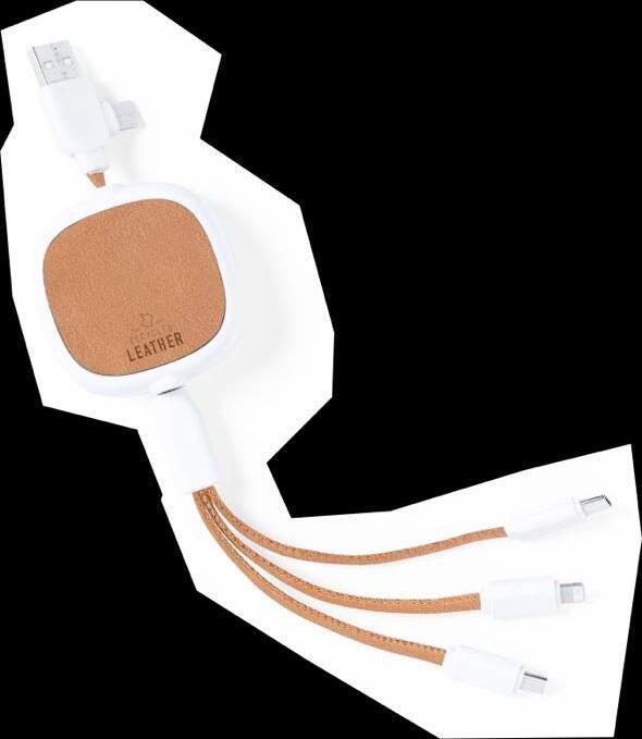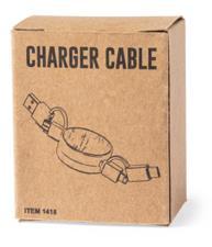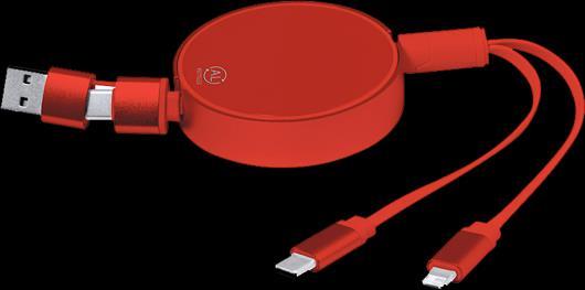 Type C connections (input and output), and dual Micro USB/Lightning. presented in an individual eco-designed box in kraft cardboard. Suitable for data transfer. Extendable Cable. Micro USB, Type C and Lightning Connection 9V DC 2.1A