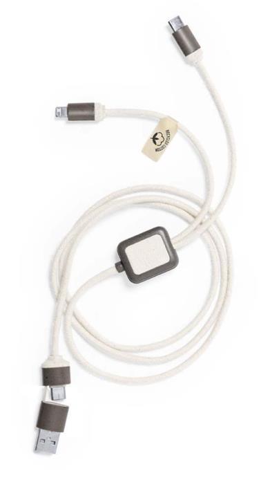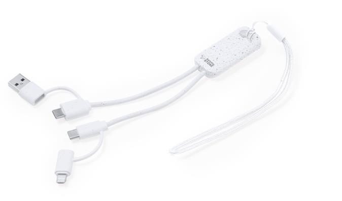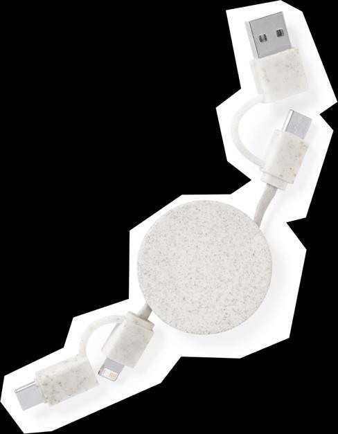 Size: 18 x 2.5 x 0.8 cm | 20 gr. Charging cable made from natural stone extracts in combination with resistant ABS. With Type C/USB input connections and Type C, Lightning and Micro USB outputs. 5V DC 2.4A.