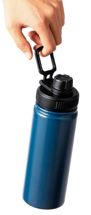 750 ml capacity bottle, made in stainless steel with glossy finish. With matching, original screw cap in stainless steel, and integrated handle. BPA free and presented in an individual box with kraft design.