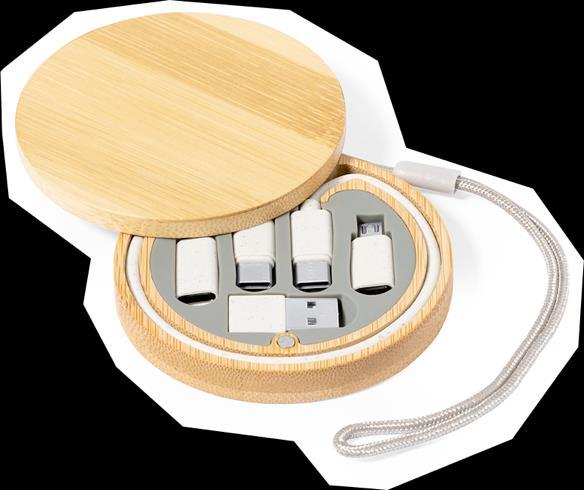 Size: 4 x 10 x 0.8 cm | 20 gr. Nature line keychain charger in compact design. Made of bamboo from natural cuts. Type C (input and output) and dual micro USBLightning connections, with reversible USB system for easy connection to the power supply. Generous branding surface and presented in an individual, selfsealing bag with an eco-design.