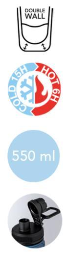 550 ml capacity thermal bottle, made in double wall stainless steel. With screw cap, BPA free and available in a wide range of satin colours. Presented in an individual box with kraft design.