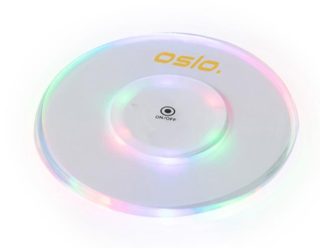 Original coaster with 6 LEDs for the illumination of drinks. With button on the base and 3 lighting positions (fixed light and fast or slow flashing light). It is attached to the base of any drink with self-adhesive tape and is powered by two button cells (included).