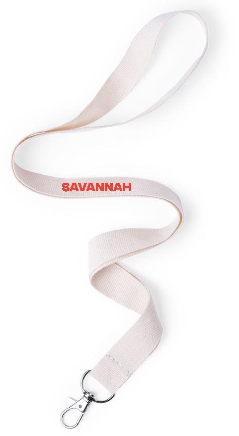 Nature line lanyard in 100% cotton material. Natural color and including a metal carabiner.