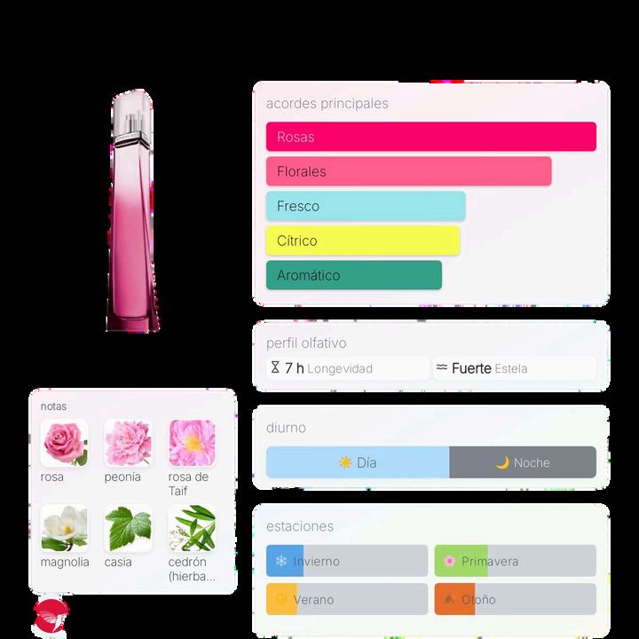 Notas:rosa, frambuesa, pera, gamuza, almizcle, pimienta rosa.