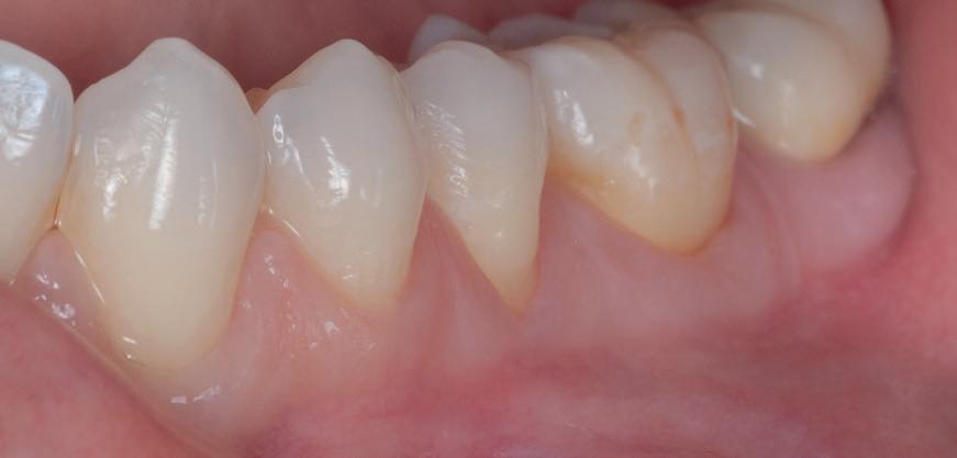 7. A fost urmat algoritmul RSC pentru a determina planul optim de tratament pentru restaurarea leziunii din fig. 6, care a implicat mai întâi o grefă CTG cu un lambou avansat coronar până la CEJ, urmată de restaurări din compozit pentru restaurarea smalțului pierdut.