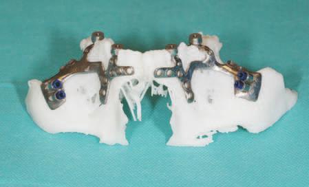 După pro ectarea ar p oarelor, restaurarea prov zor e poate f frezată sau mpr mată ș l p tă pe o bază h br dă de t tan (t -base) standard (f g. 8, 9). În t mpul ntervenț e ch rurg cale, după strângerea șurubulu de bontul prov zor u, baza ar p oarelor poate f îndepărtată rap d ș reg unea se poate lustru ușor deoarece bazele ar p oarelor vor f expuse ș ușor acces b le. O abordare cu o s ngură ar pă se poate mplementa dacă sunt plasate ma multe mplantur (f g. 10).
