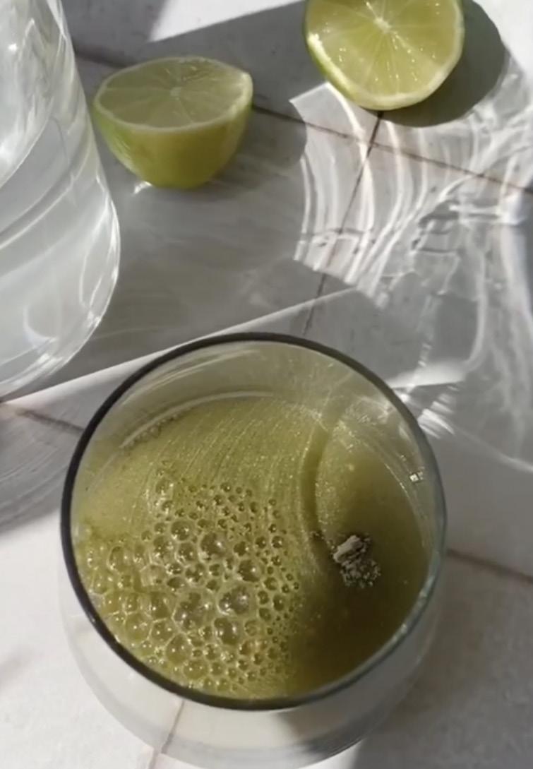 Cucumber, celery, green apples, lime, coconut water and Super Green and Grateful Gut