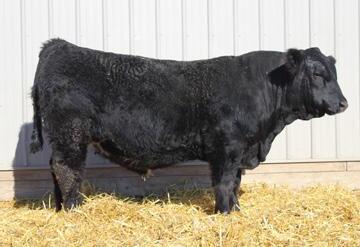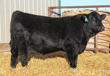 A half blood Angus bull out of a first calf heifer that is really stout and long spined. I think he could be sampled on large heifers, but would probably be best used on young cows.