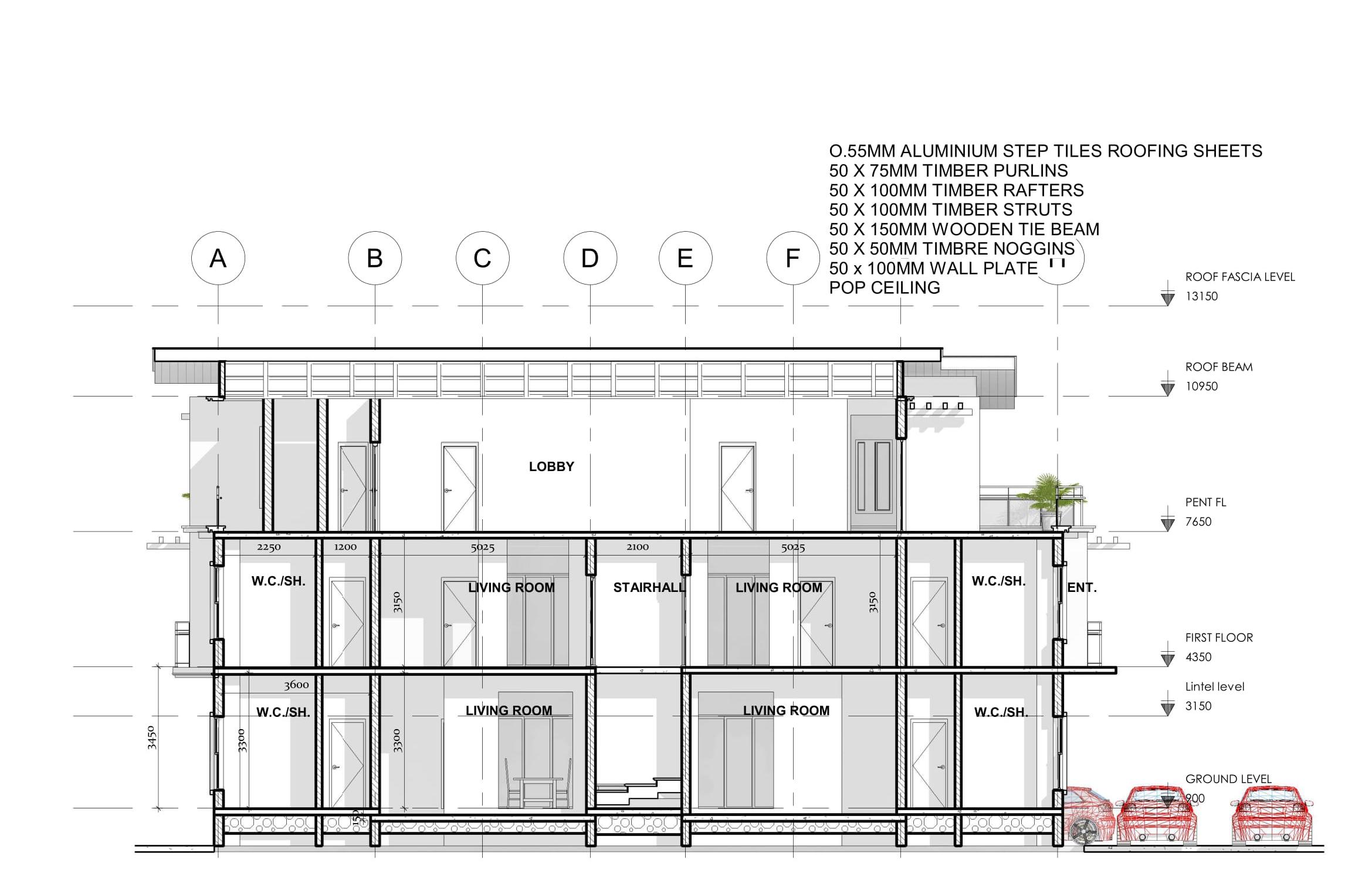 The blown-up sections showcase construction methods, material interfaces, and how structural and thermal performance was considered at critical points, including wall build-up, floorto-wall junctions, and roof detailing. Each drawing was developed to communicate both design intent and buildability, ensuring clarity for construction teams and alignment with technical standards.