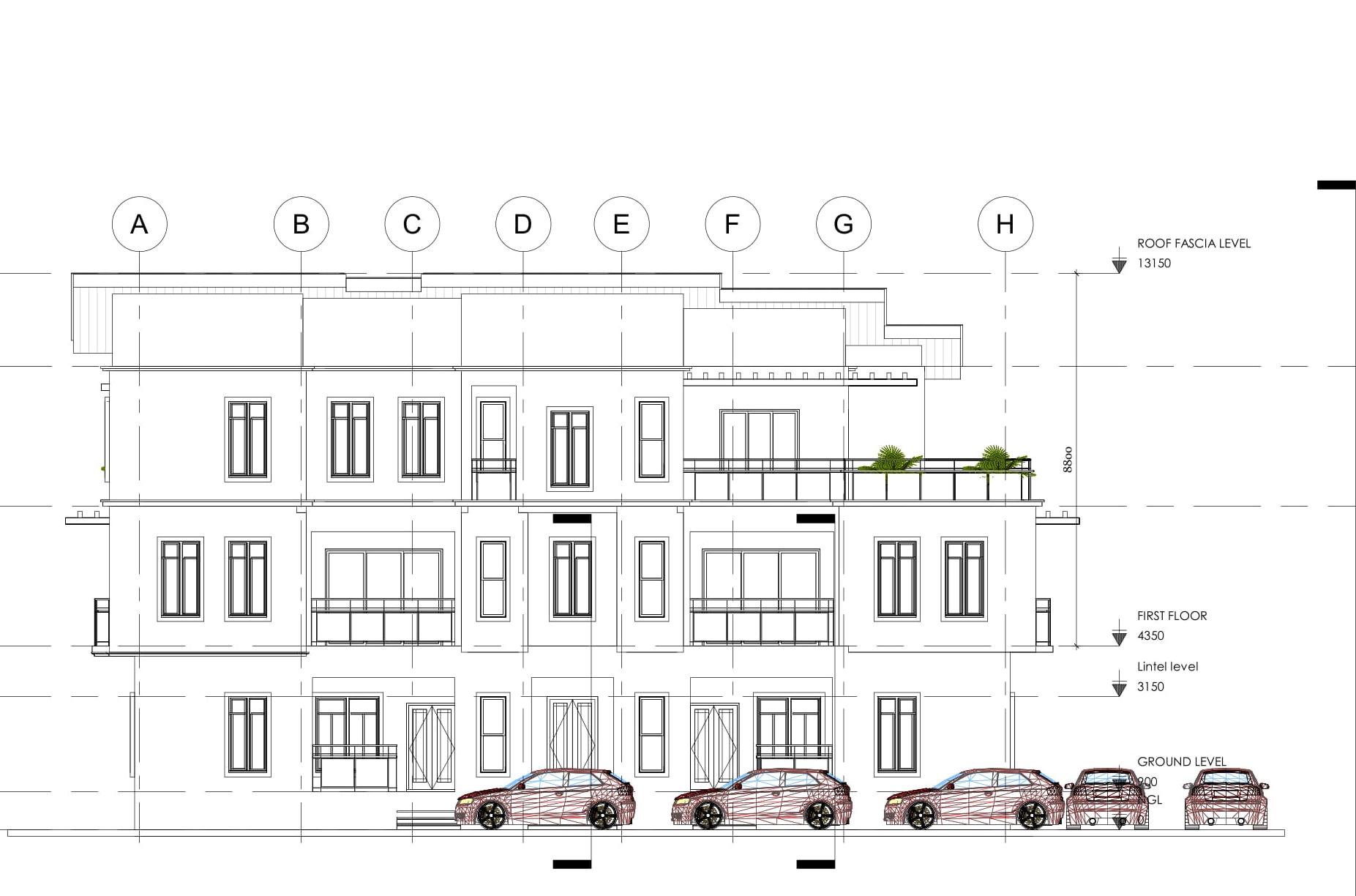 The design language is defined by horizontal emphasis, simplicity, and visual rhythm. Clean linear forms and layered façade elements create depth while maintaining a restrained modern identity. Carefully positioned openings maximise natural light and cross-ventilation, strengthening the connection between interior spaces and the surrounding environment.