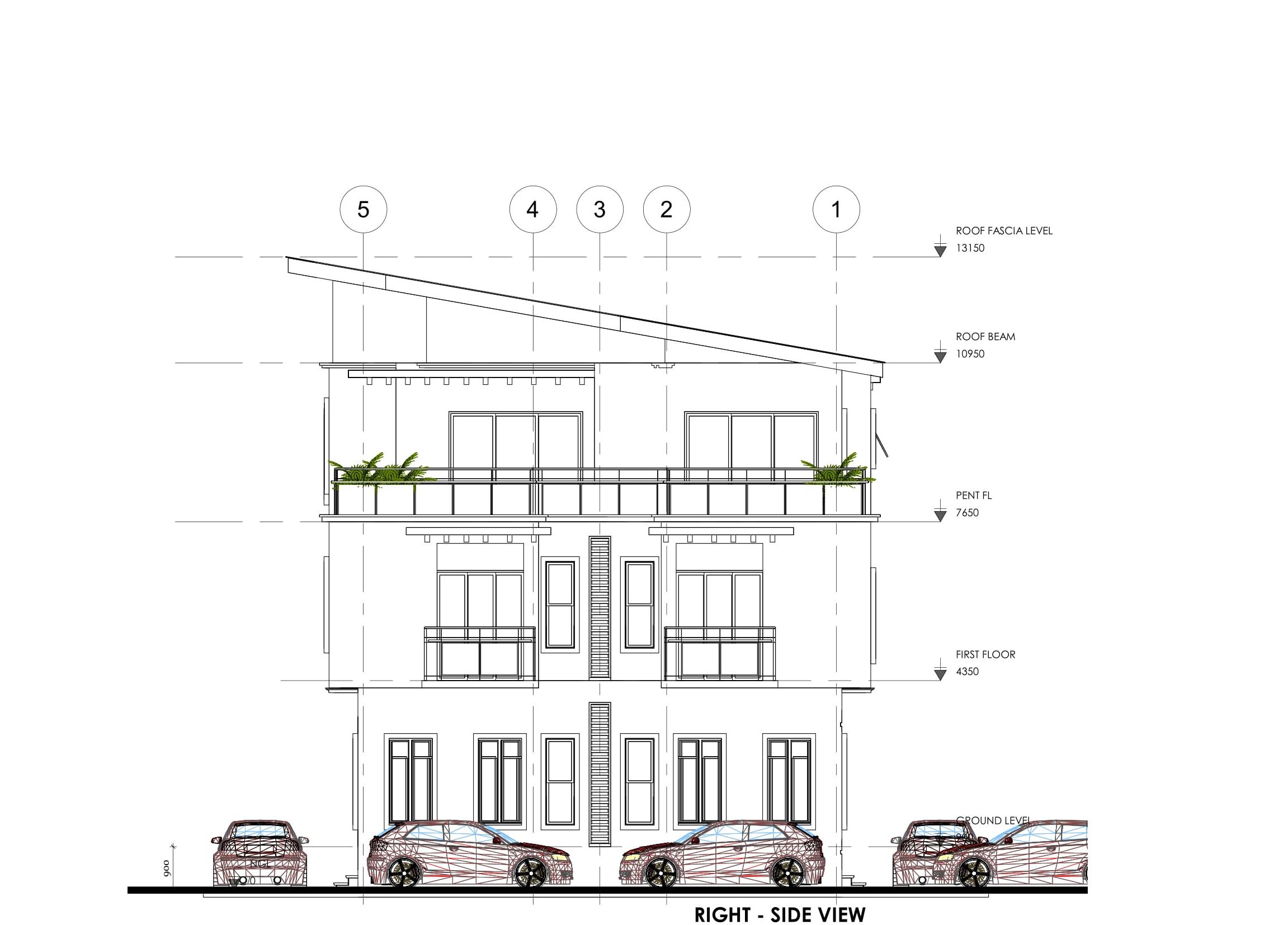 This project explores the design of a symmetrical residential duplex developed to maximise spatial efficiency, privacy, and functional clarity within a compact residential footprint. The proposal consists of four identical housing units arranged around a shared central circulation core, with the ground and first floors repeating the same spatial organisation to achieve construction efficiency and spatial consistency.