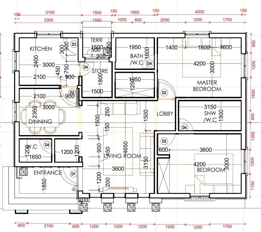 The planning strategy separates the home into clear functional zones. Living, dining, and kitchen areas form the social core of each unit, positioned for accessibility and interaction, while bedrooms are located toward quieter edges to ensure privacy.