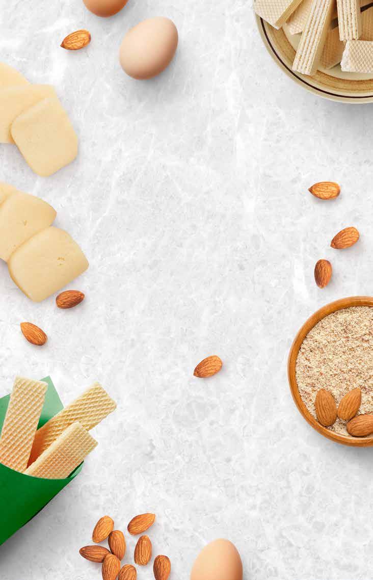 Marzipan, gemahlene Mandeln, Zucker und Eiweiß zu einer glatten Masse verkneten. Eine Schicht Waffelblatt auflegen und mit der Marzipan-Mandel-Masse gleichmäßig bestreichen. Eine weitere Waffelschicht darüberlegen und leicht andrücken. Diesen Vorgang für mehrere Schichten wiederholen. Die fertigen Schichten leicht beschweren und eine Stunde ruhen lassen, damit sie gut zusammenhalten. Anschließend in kleine Rechtecke oder Rauten schneiden. Perfekt zum Teilen und gemeinsam genießen!