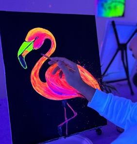 A vibrant and immersive paint & sip experience under black lights, with fluoro colours! Our experienced artists will guide you step by step to create your very own neon masterpiece to take home.