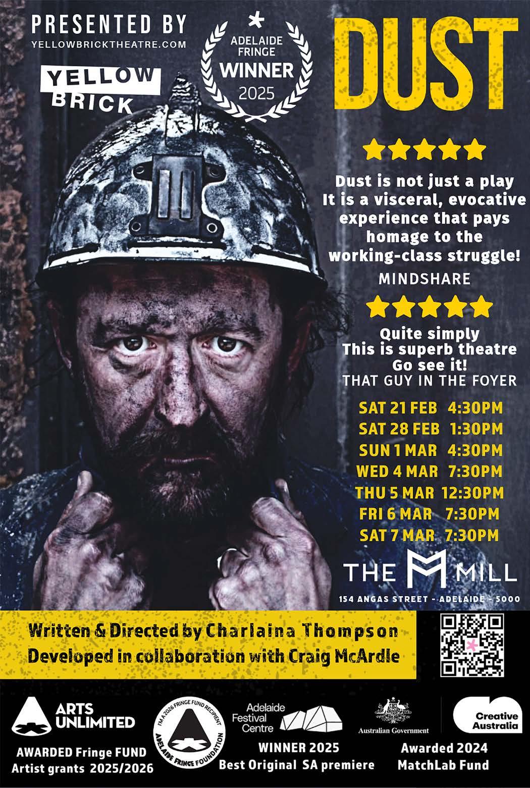 THANK YOU TO OUR AWARDS PARTNERS: ADEADELAIDE COMEDY, ADELAIDE CRITICS CIRCLE, ADELAIDE FESTIVAL CENTRE, AUSTRALIAN REFUGEE ASSOCIATION, BANKSA, CARCLEW, CREATE SA, DOLPHIN CREATIVE, FEAST FESTIVAL, FIJI FRINGE, FRANK FORD AM BEQUEST, FRINGE WORLD, GRAHAM F SMITH PEACE FOUNDATION, GUILDHOUSE, HEALTH PARTNERS, HOLDEN STREET THEATRES, HOLLYWOOD FRINGE, HOUSE OF OZ - GEORGIE BLACK, INSPIRING SOUTH AUSTRALIA, KOJO, KWP AND PARTNERS, LESLIE THOMPSON, LUMO ENERGY, MARY WALKER OAM & JOHN WALKER, MATT TARRANT, MELBOURNE FRINGE, MILKE, MUSICORP - POWERED BY STUDIO 19, NATURE FOUNDATION, NZ FRINGE, RAY AND CONRAD HENLEY-CALVERT, SARAH ROHRSHEIM, SVIGOS & DIMOND FAMILIES, SYDNEY FRINGE, TAFE SA, THE LIST, THEATRE NETWORK AUSTRALIA, TOYOTA, VISUALCOM