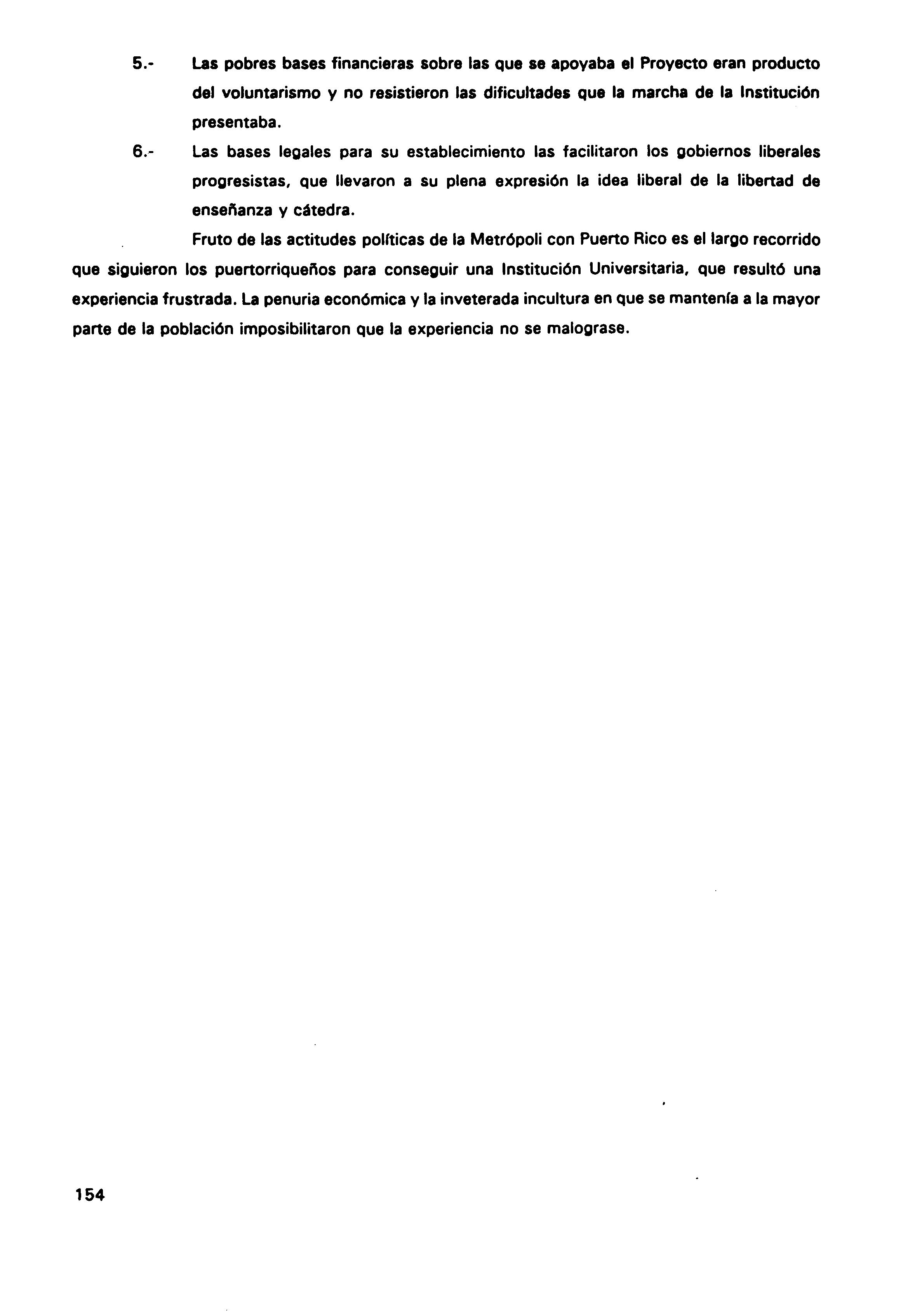 5.- Las pobres bases financieras sobre las que se apoyaba el Proyecto eran producto del voluntarismo y no resistieron las dificultades que la marcha de la Institución presentaba