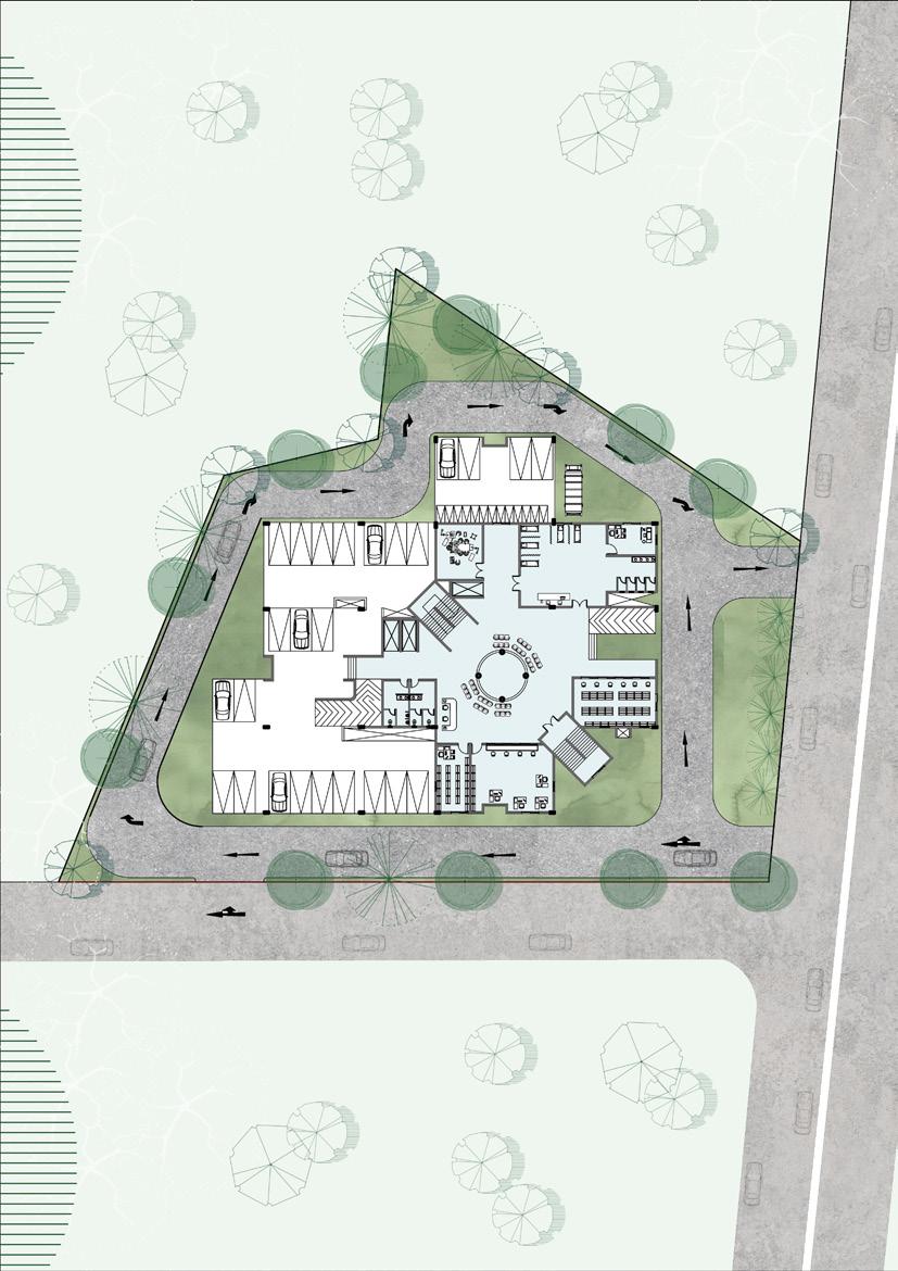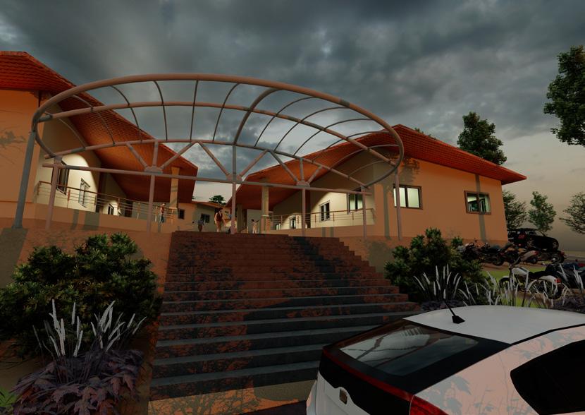 The design concept for the hospital prioritizes functionality, accessibility, and patient comfort. The ground floor, ingeniously utilized as stilt parking and administrative space, optimizes the available land area efficiently. This not only ensures convenient parking for visitors and staff but also streamlines administrative operations for seamless functioning. The first floor, characterized by its generous carpet area, serves as the focal point of patient care and services. Here, ample space is dedicated to patient rooms, treatment areas, and specialized facilities, enhancing the overall patient experience. The innovative layout of the second floor and above, configured in the shape of a plus sign, represents a thoughtful integration of architectural aesthetics and practicality. This unique design maximizes natural light penetration and facilitates cross-ventilation, creating a bright, airy ambiance conducive to healing and recovery. The strategic placement of windows on each floor ensures optimal daylighting and promotes a sense of openness throughout the hospital, fostering a healing environment that prioritizes the well-being of patients and staff alike