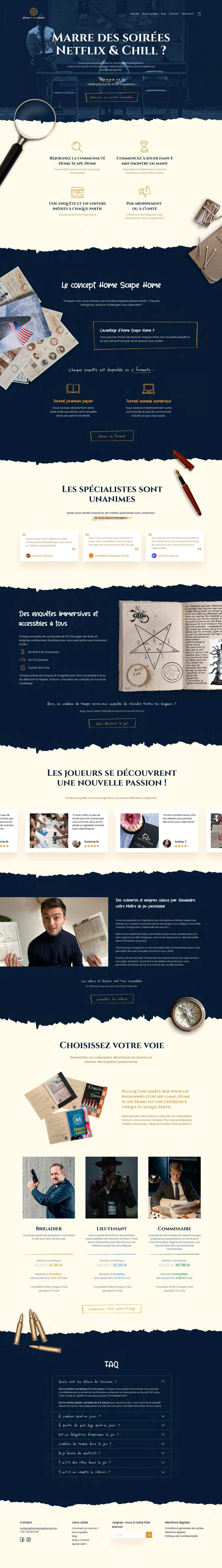 HomEscapeHome, e-commerce website that sells home escape games (digital or physical). They sell escape games in the form of a subscription, they create 1 escape game per month.