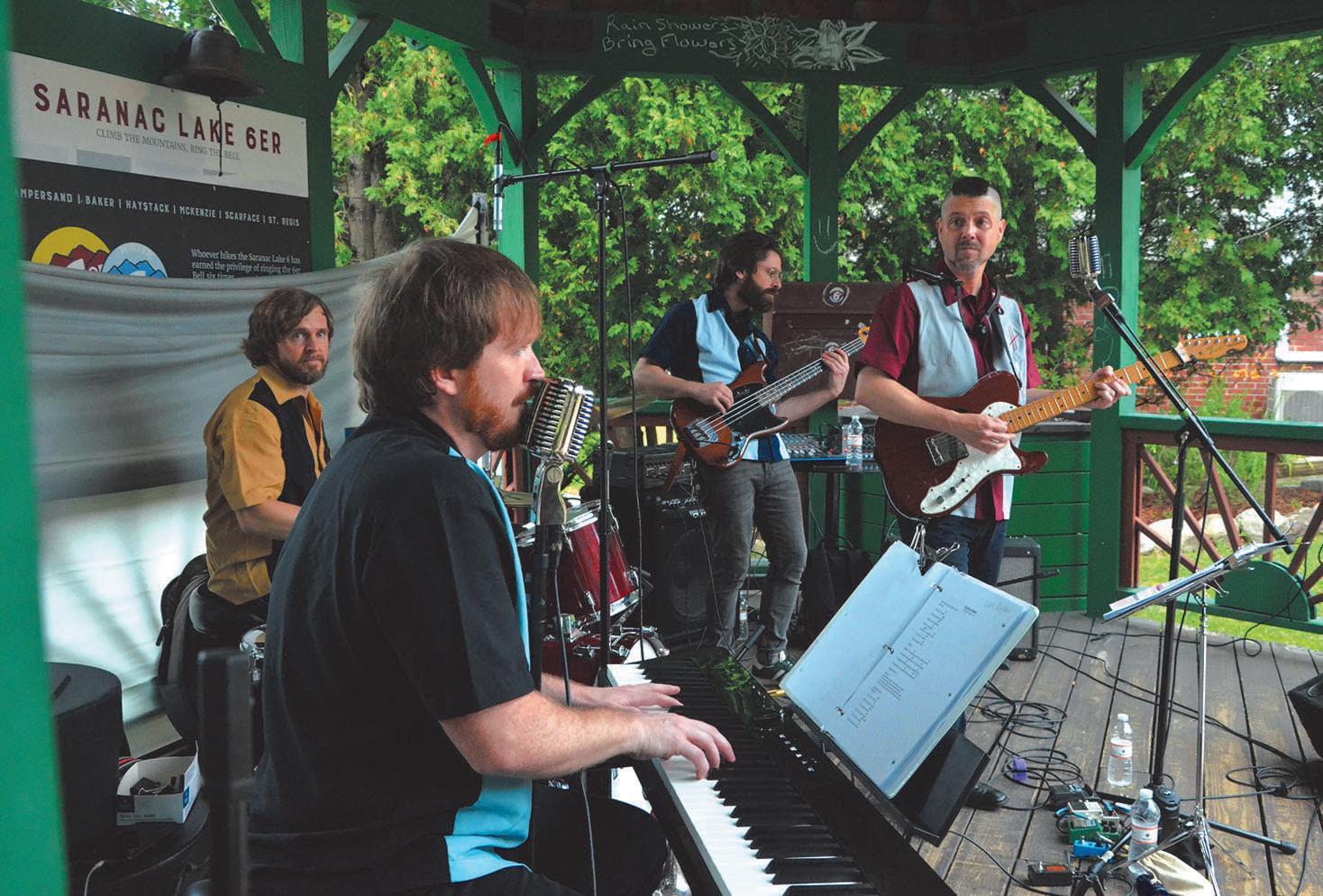 The Pre-Fabs - Mike Reilly, Brian Michael Henry, Charles Mueller and Spiff Wiegand - perform at Berkeley Green during ArtWalk.