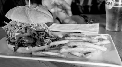 Our homemade BBQ pulled pork topped with fresh coleslaw and melted cheddar cheese on a grilled soft roll