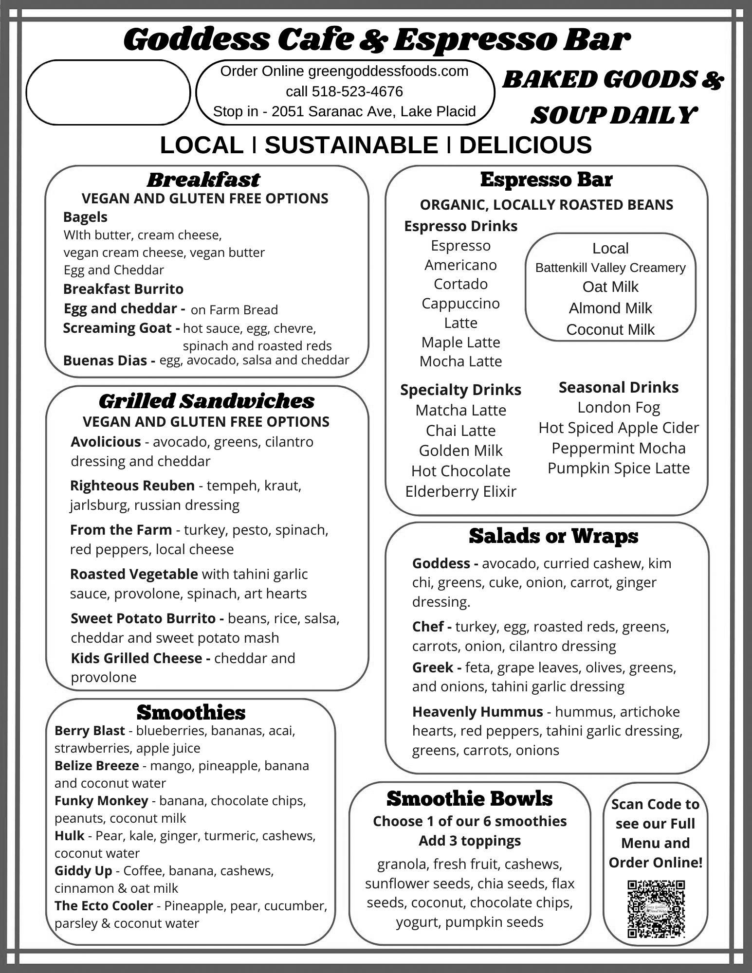 Limited seating; seasonal offerings. Call or reserve your experience online.