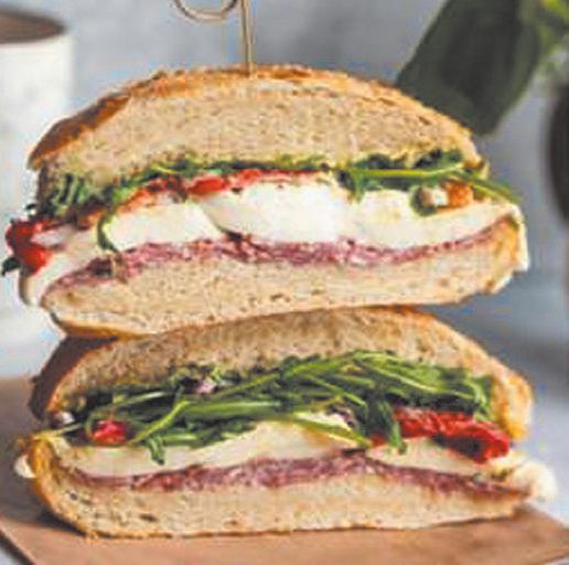 Grilled turkey breast, onions, roasted red peppers with Monterey Jack cheese and pesto mayo served on grilled sourdough bread