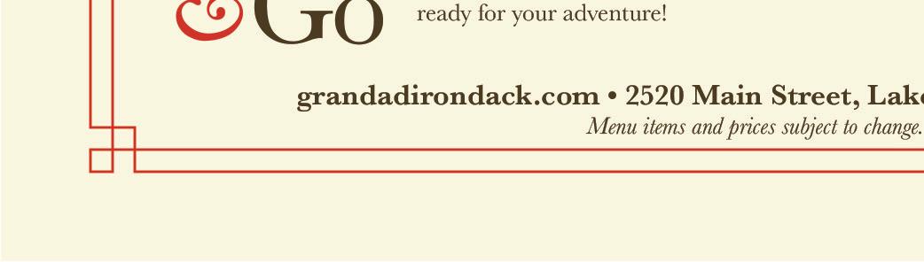 • Great Camp Dinner in either the 1886 Stagecoach Dining Room or Lakeview Great Camp