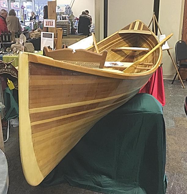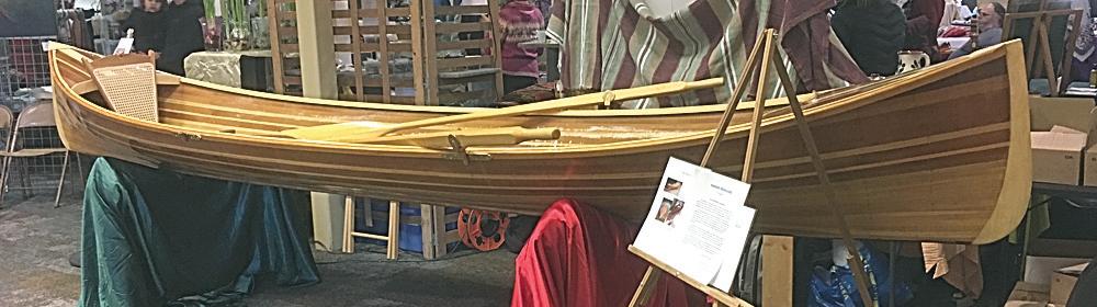 Measuring 15 ½ feet long, 4 feet wide, weighing in about 110 lbs., Western red cedar and Alaskan yellow cedar form the hull. The “football” bottom board is ½ inch solid Cherry. Both stems and partial decking are Aspen. The deck is both Western red cedar and Aspen. Out-wales are Spruce/ In-wales are Ash. Oars are Canadian Sitka Spruce. Seats are Cherry. Asking price: $9,500.00