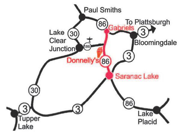 Directions: From Paul Smith’s College, go north for 8.8 miles and turn left onto Route 458. Go