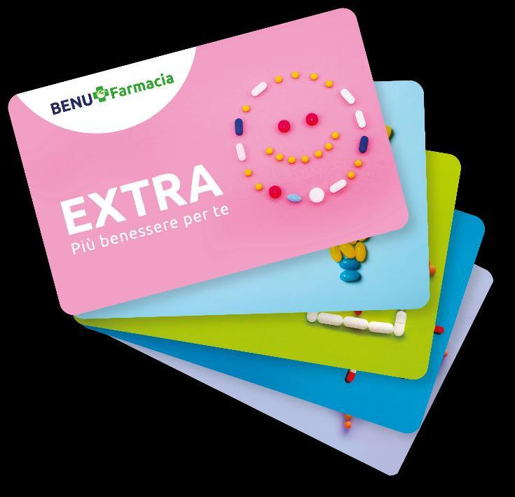 Carta EXTRA è una carta personale completamente gratuita utilizzabile dal Titolare o da componenti del nucleo familiare dello stesso. La carta viene distribuita da BENU Farmacia, Farmacie Comunali, Parafarmacie BENU Salute e BENU Farmacie Franchising, ai propri Clienti per accedere alla raccolta punti e ad offerte dedicate.
