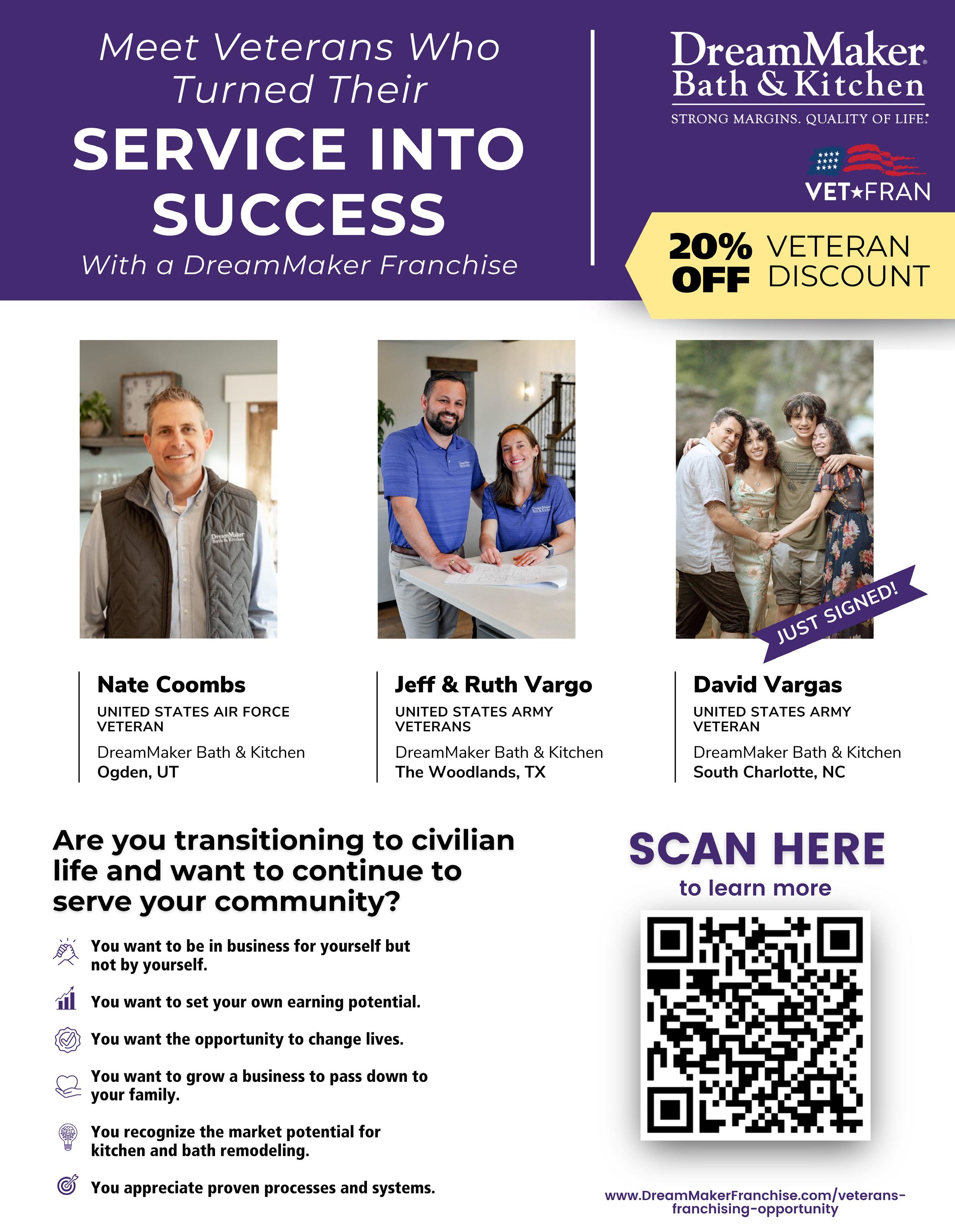 • Veterans, public service professionals nearing retirement, and former corporate management professionals represent the largest segment of our franchisee base.