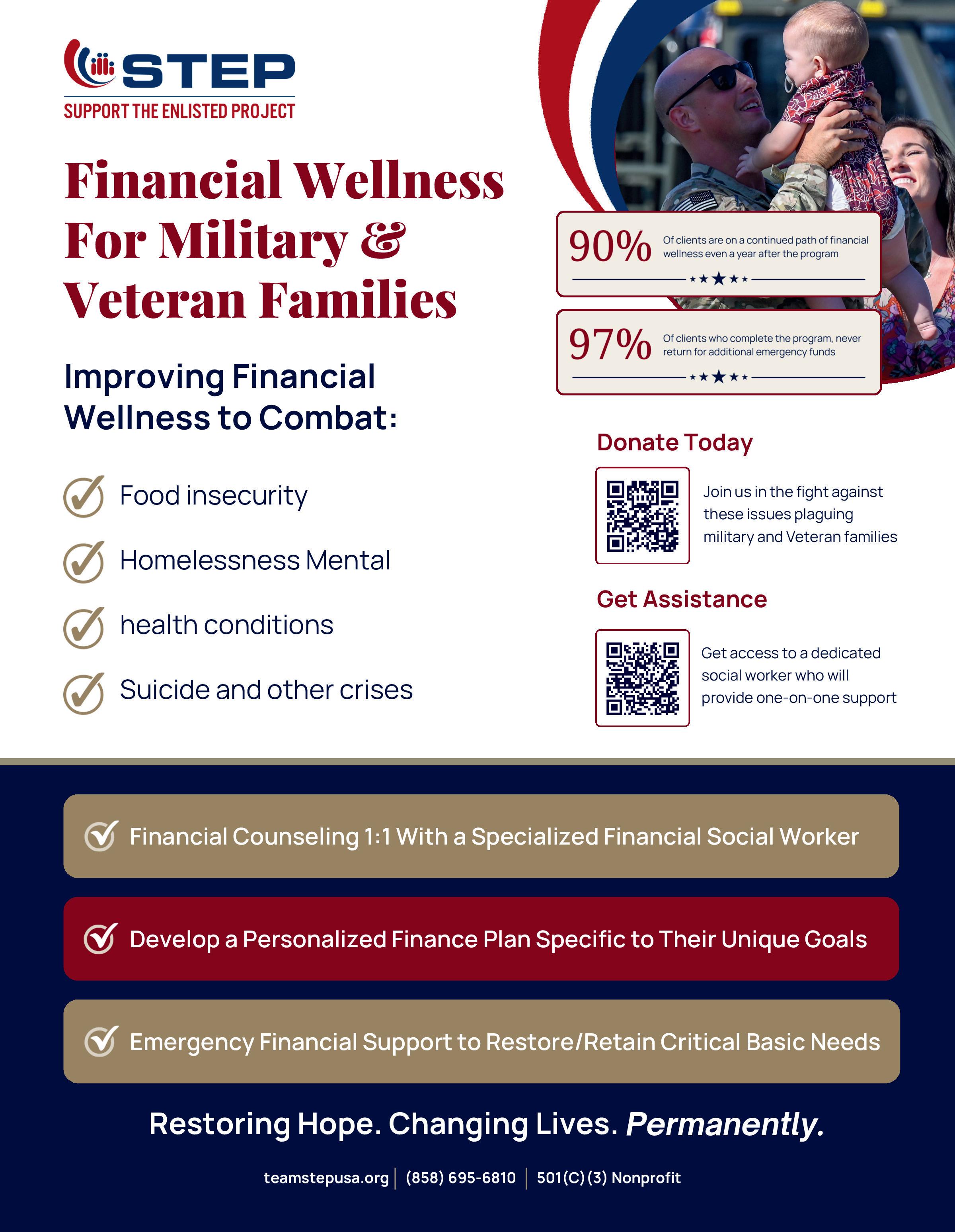 Reach out to The Veterans Chamber (NVCC) www.vccsd.org for support on how to establish a clear path to a successful household and budget, Transition Plan with clear Objectives and archivable outcome.