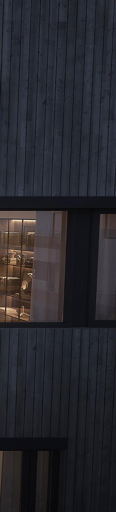 Hovedmaterialer i stående kledning iht. arkitektens beskrivelse.