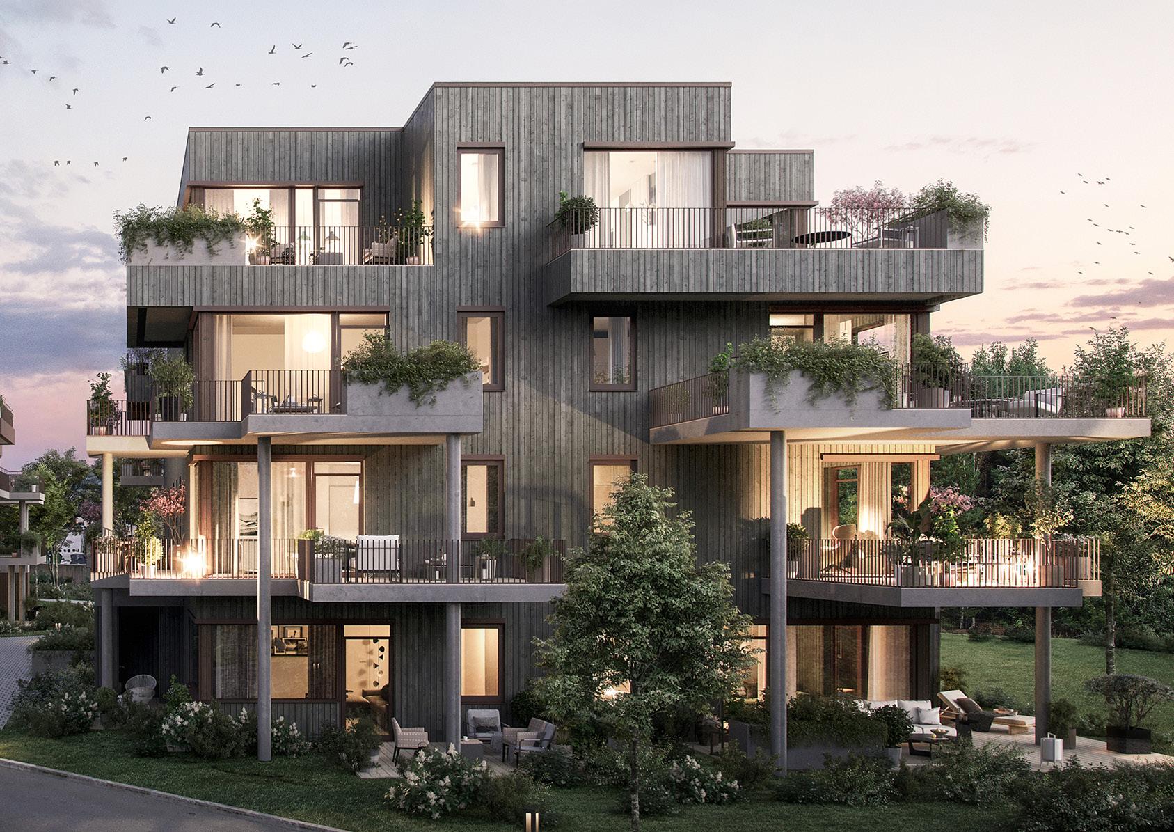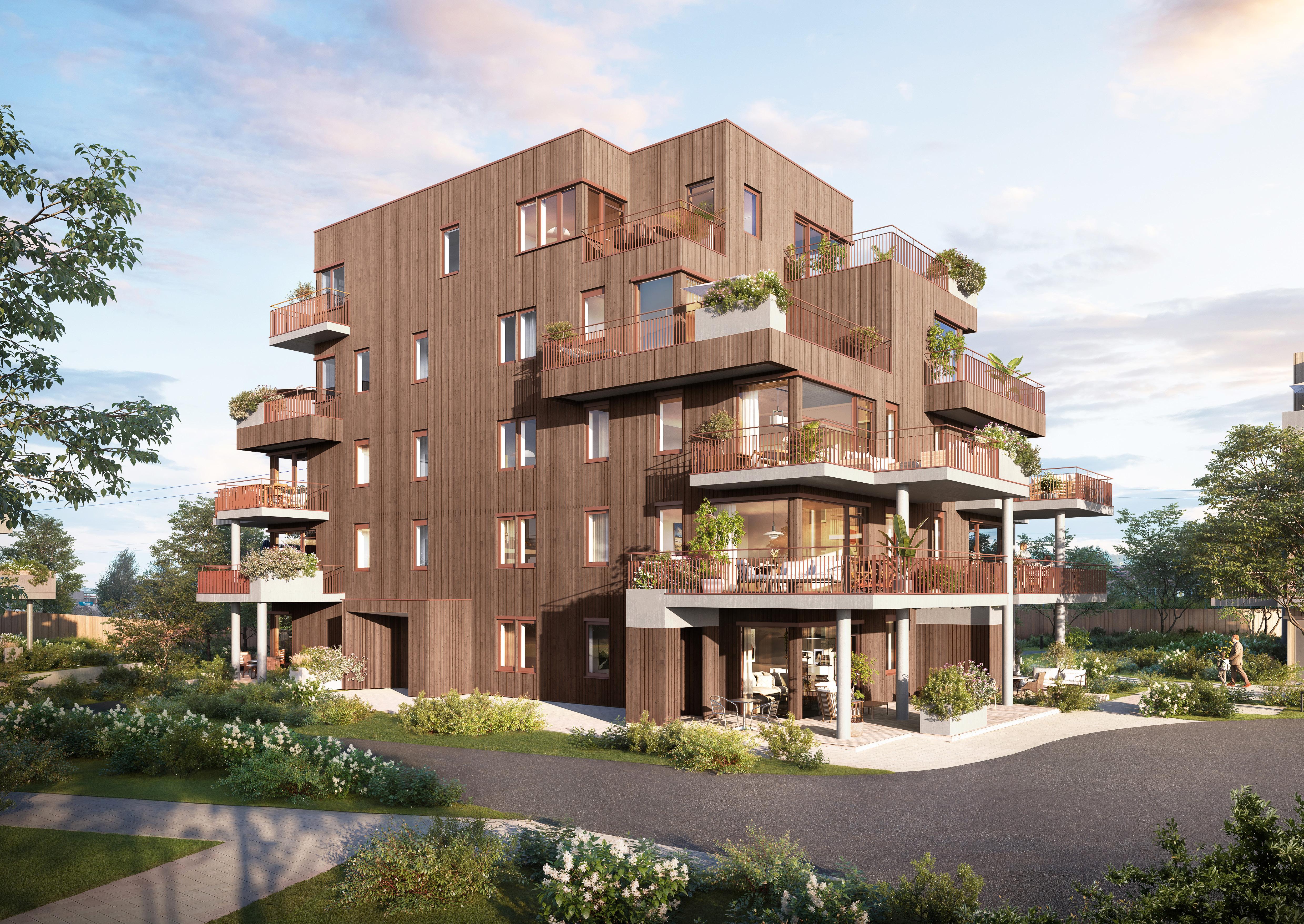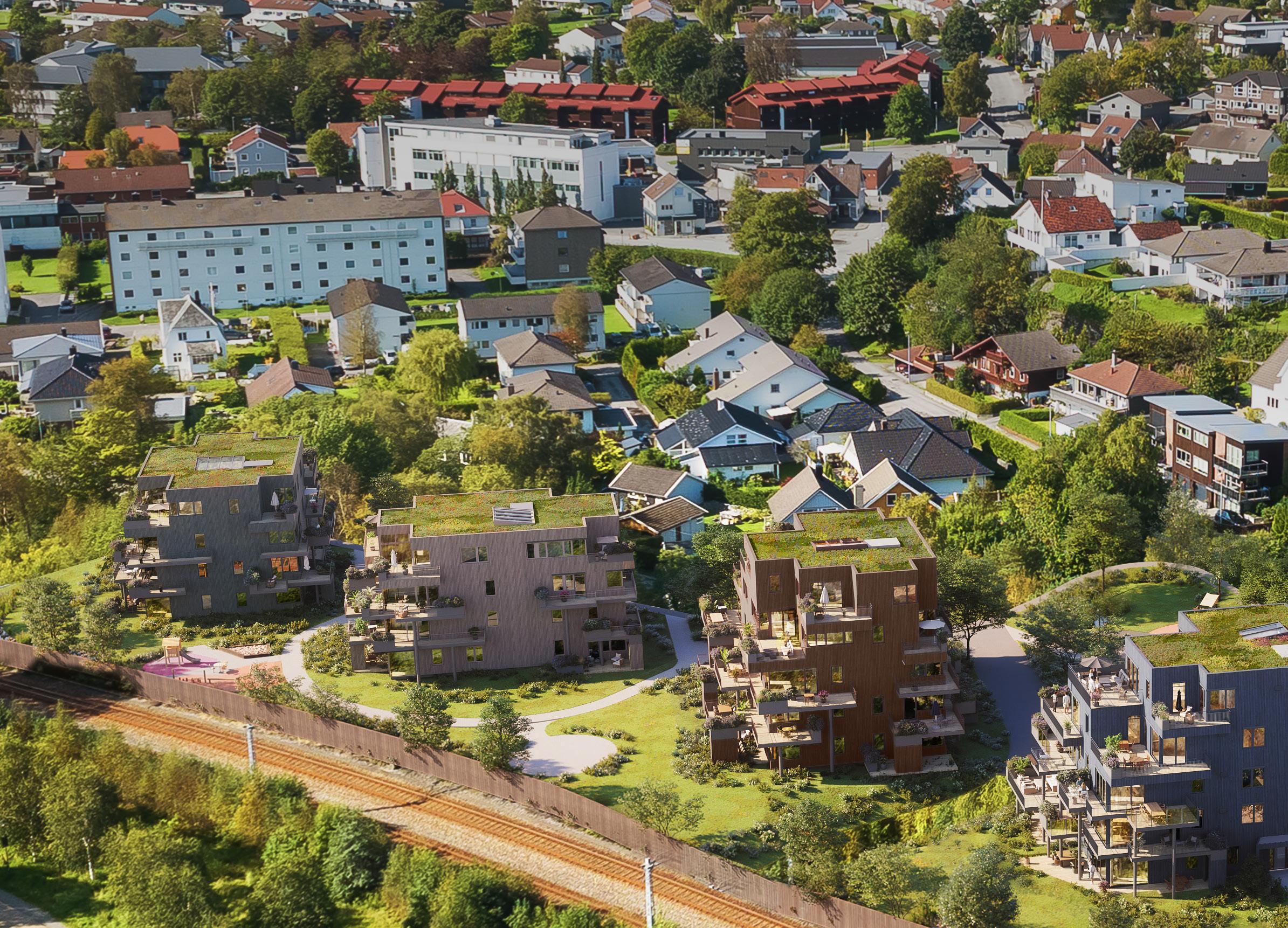 Prosjektet er fordelt på fem bygg med til sammen 73 leiligheter på 44 til 127 m² BRA-i.