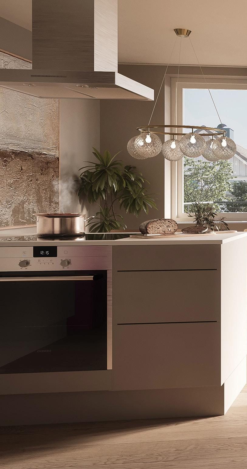 For øvrige leiligheter med koketopp plassert på kjøkkenøy, leveres koketopp med integrert avtrekk iht. kjøkkentegningene.