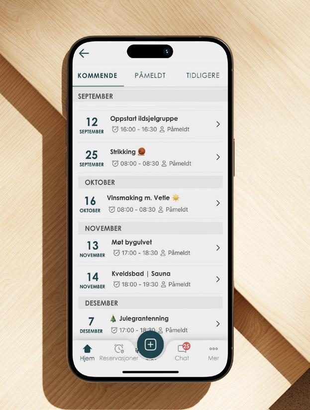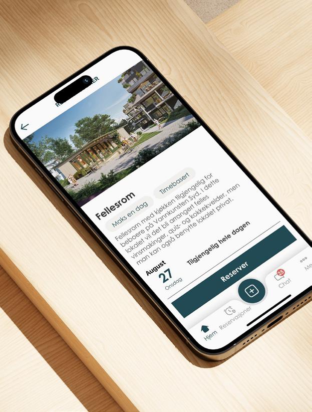 Heime-appen gjør det enkelt å reservere fellesfasiliteter, finne tur- og aktivitetsfølger, dele tips og holde kontakten med naboene i chat.
