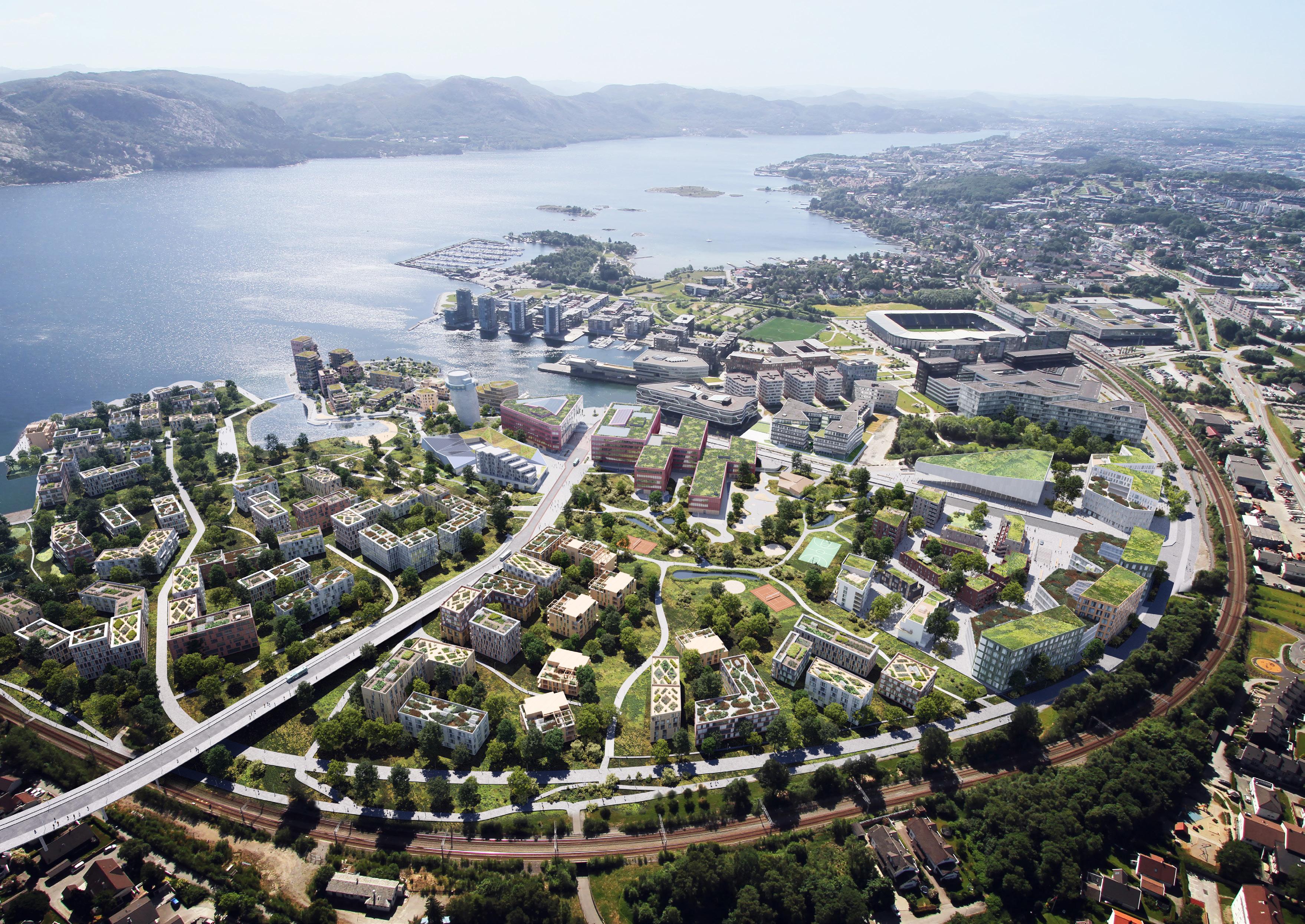 arbeidsplasser og flotte grøntområder med gangveier og sykkelstier som vil knytte sammen Boganes og Vaulen, både langs fjorden og innover området.