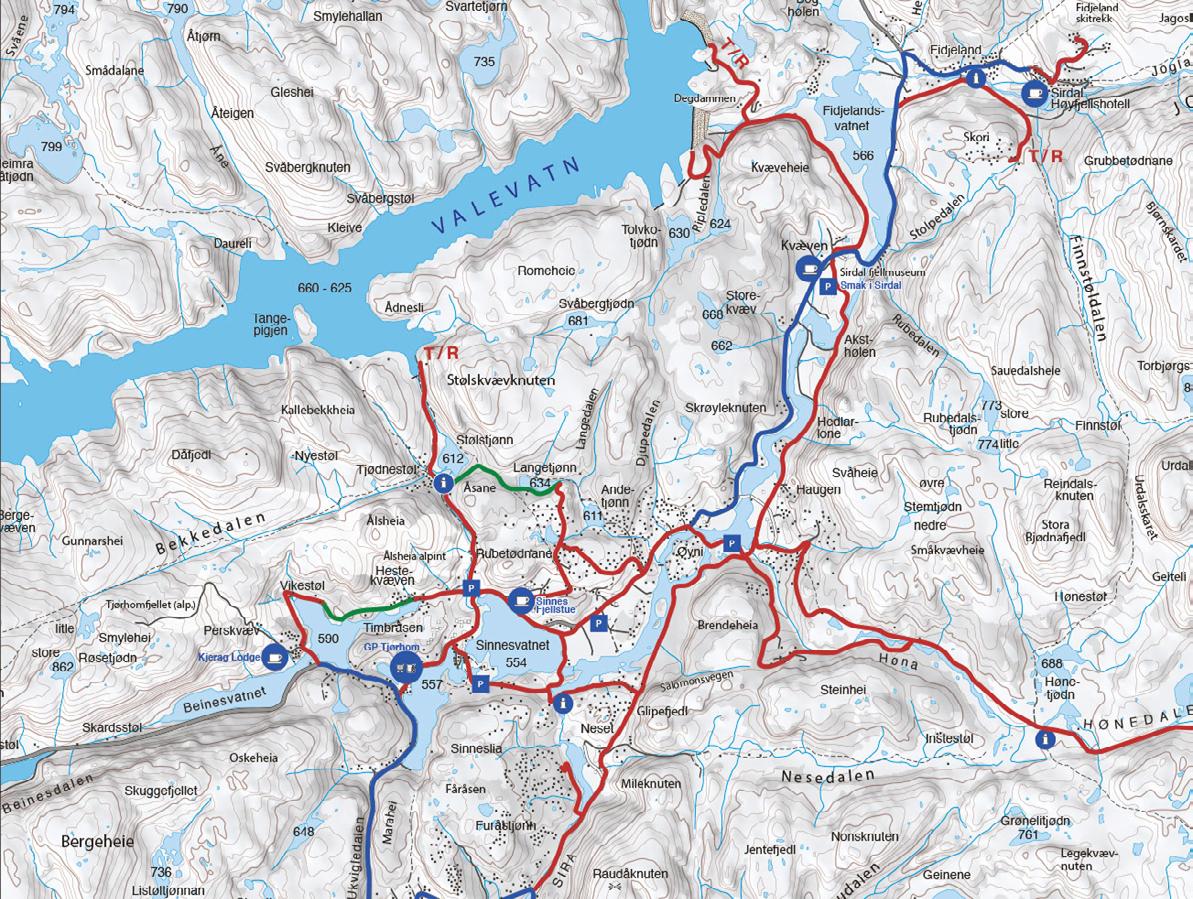 Sirdal byr på mange aktivitetar og langt fleire enn dei me nemner her. Her får du eit godt utgangspunkt som gjer deg gode anledningar til å bli betre kjend og oppdage meir. Er du frisk og rask, er det ingen grunn til å berre sitte inne på hytta. For Sirdal er både eit sommar- og vinterparadis med fantastiske rammer for å oppleve naturen til fots, med eller utan ski på beina. Sykkelstiane ser du markert i kartet. Nyt Sirdal!