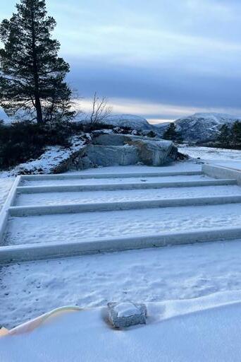 Her har me hatt ein svært travel sommar der alle tomter no er grovplanert og vegstruktur osb. er på plass. Det står att ein del finish, men det er ingen problem å sjå kor flotte tomtene faktisk blir. Me er også i gong med byggjing av den fyste hytta. Denne skal leverast før påske 2023 og det ser me fram til. Det har vore litt av og på med reservasjonar i desse rufsete tider, men tomt 1 er også reservert og me legg nok ut eit par ferdigprosjekterte hytter for sal i vinter. Det er uansett ikkje eit problem å få skreddarsydd hytte på ei av dei ledige tomtene me har der. Dette er jo dei mest sentrale hyttetomtene som finst på Sinnes.