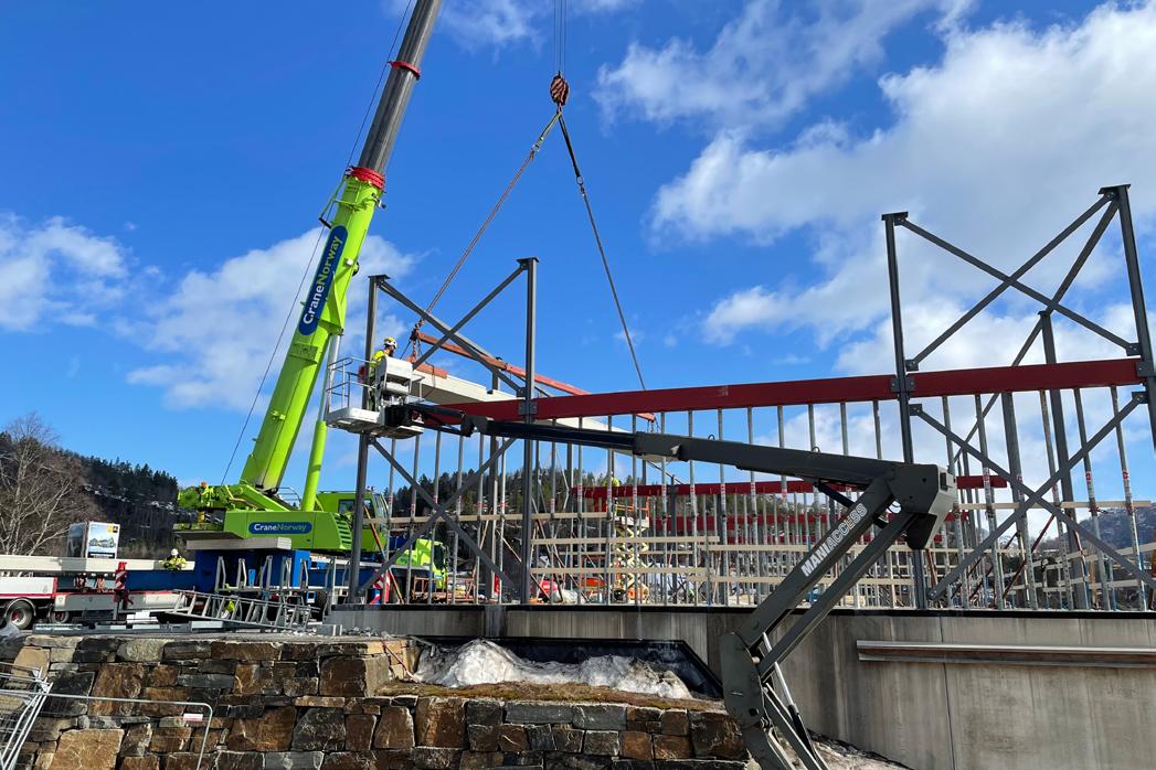 Me har i år revet ei hytte frå 60-talet på Øyne. Her er me i gong med å sette opp ein versjon av modellen Hilleknuten. I tillegg byggjer me eit tøft eldhus på same tomt, – dette blir eit særs flott tun.
