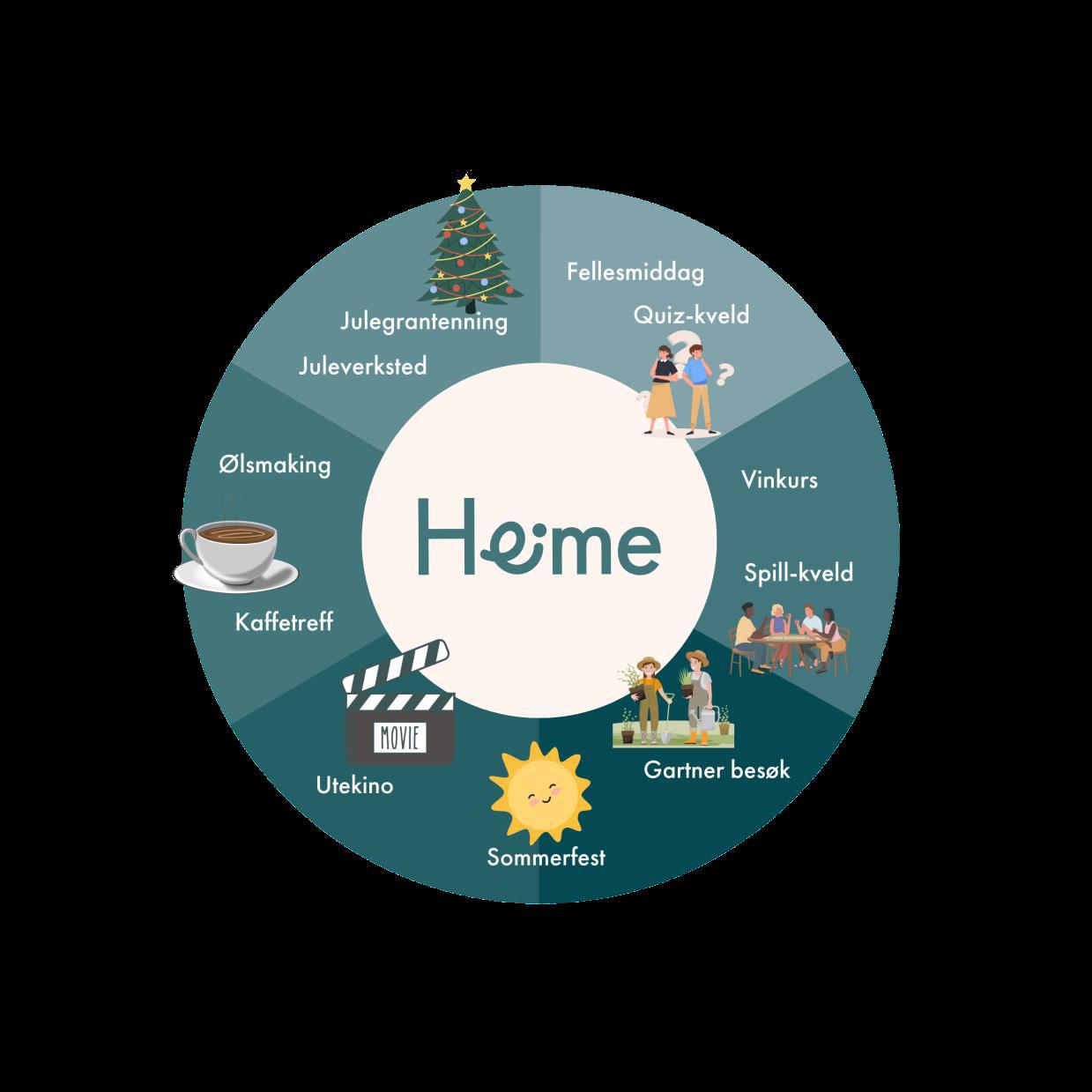 Årshjulet er et forslag på aktiviteter. Det vil bli tilpasset beboernes og sameiets ønsker.
